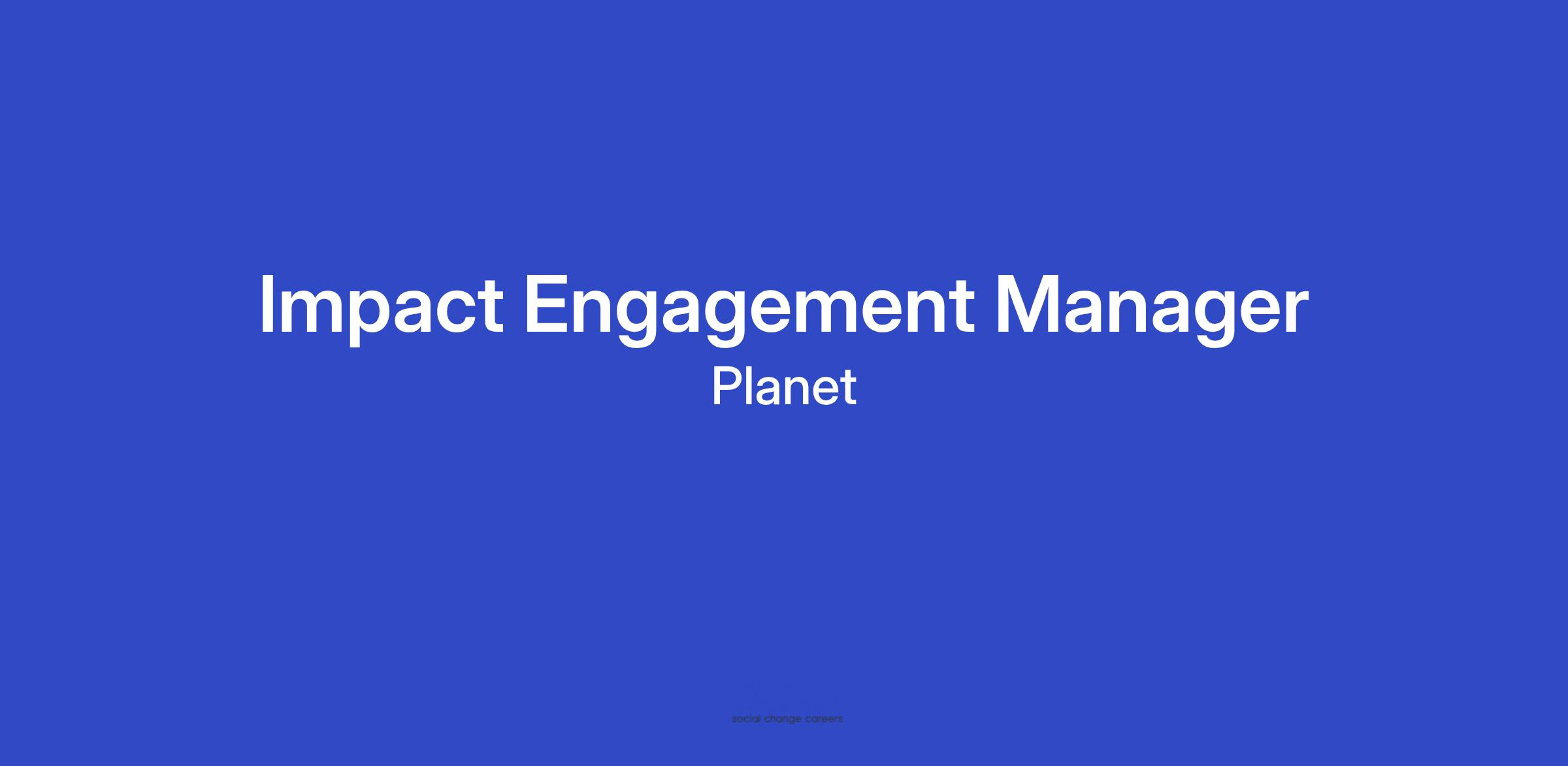 The Sustainability and Impact Team at Planet is seeking a new Impact Engagement Manager. This role will have frontline responsibilities to work with external partners in areas like conservation, climate, nature, public health, and humanitarian action, to help us fulfill our mission to Use Space to Help Life on Earth.