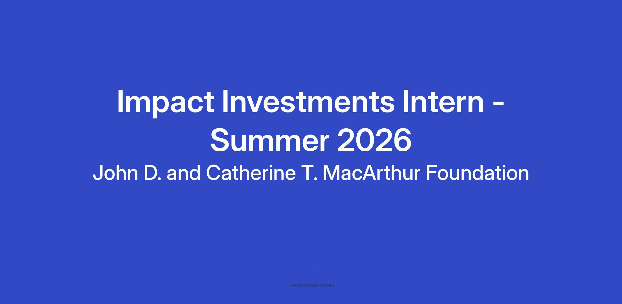 Position: Impact Investments Intern - Summer 2026
