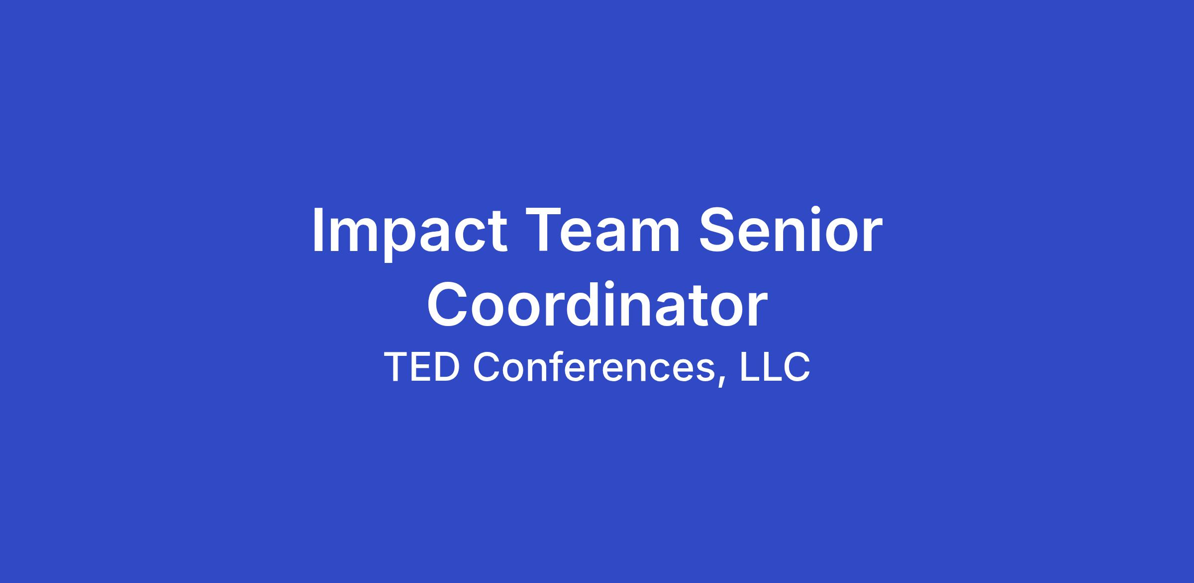 The Impact Team is responsible for leading the organization’s issue-specific initiatives (like TED Countdown, TED Democracy, and others) and fundraising efforts across digital membership, conference support, custom events and org-wide major gifts.