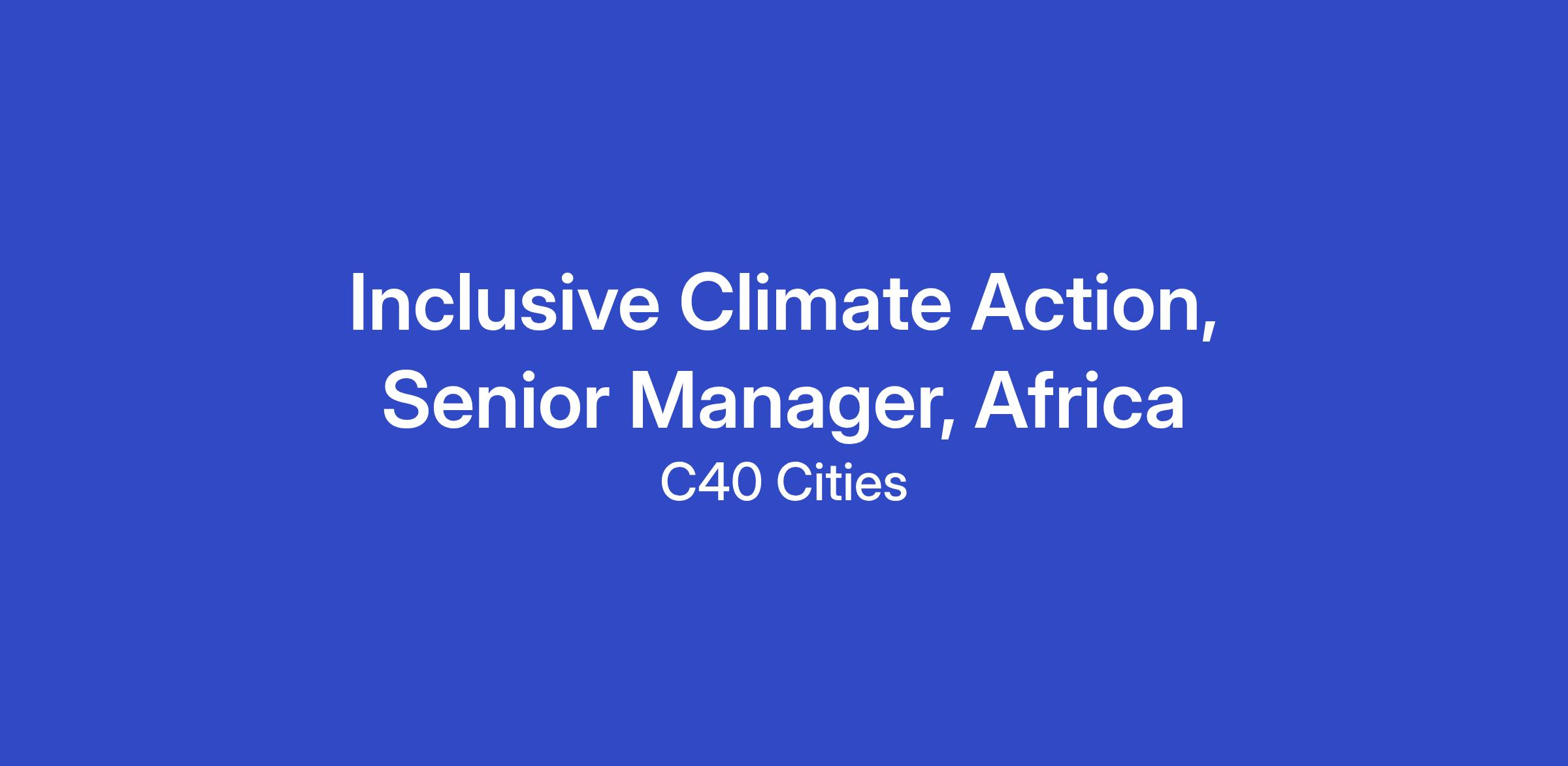 The Inclusive Climate Action (ICA) Senior Manager for Africa will serve as the main point of contact for equity and inclusivity within C40’s Resilient Urban Futures programme. This role involves providing policy and technical advice to city officials, specifically identifying key priority adaptation actions for collaboration between cities and local communities, based on Climate Action Plans (CAPs) and local need assessments.