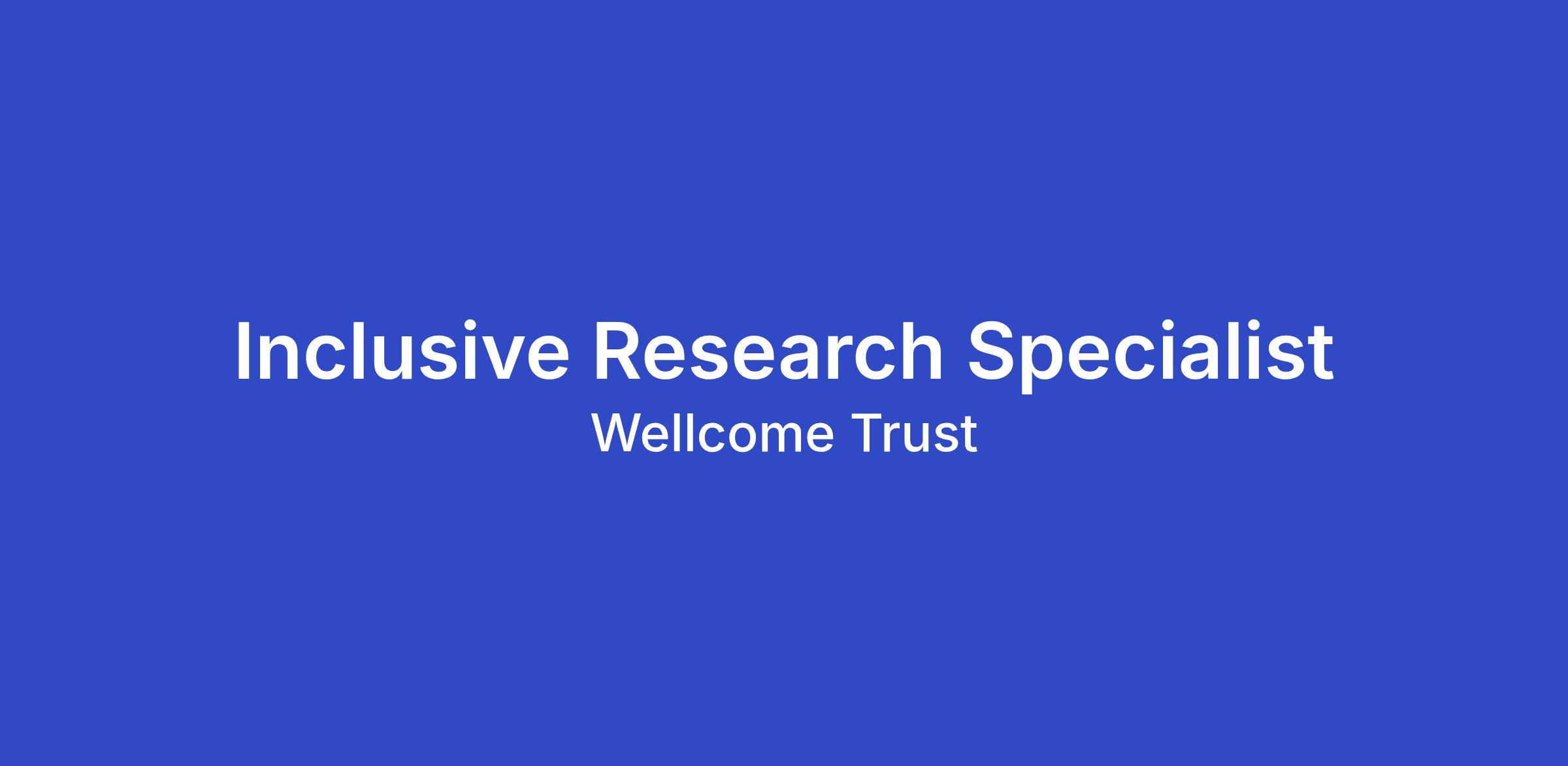 We have an exciting opportunity for an Inclusive Research Specialist to join our team. This role will be part of a team embedding equity across Wellcome’s funding and research, specialising in inclusive research expertise and practice.