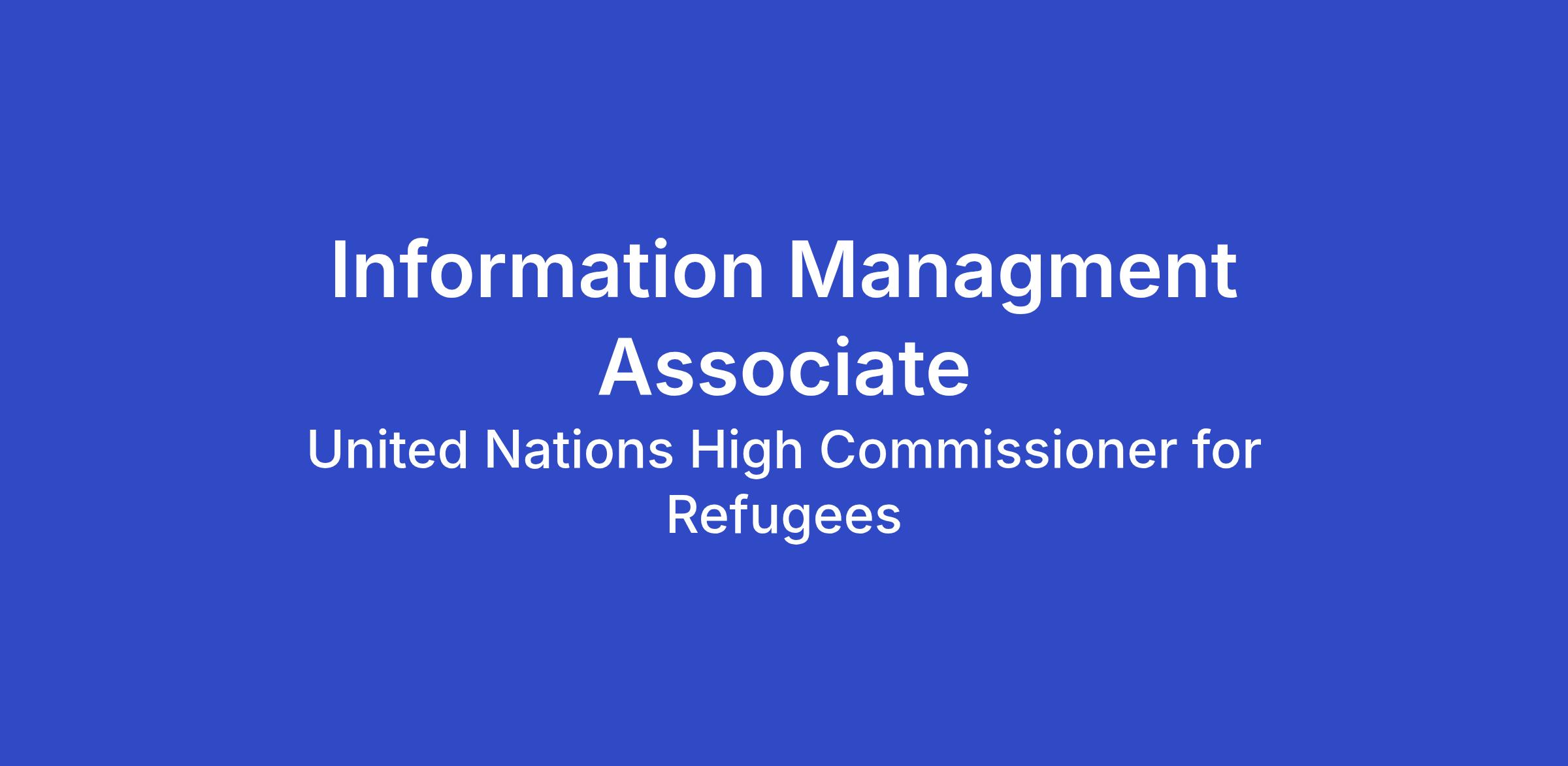 The Information Management Associate supports the production and dissemination of information on the population of concern, including but not limited to Protection and Programme information.
