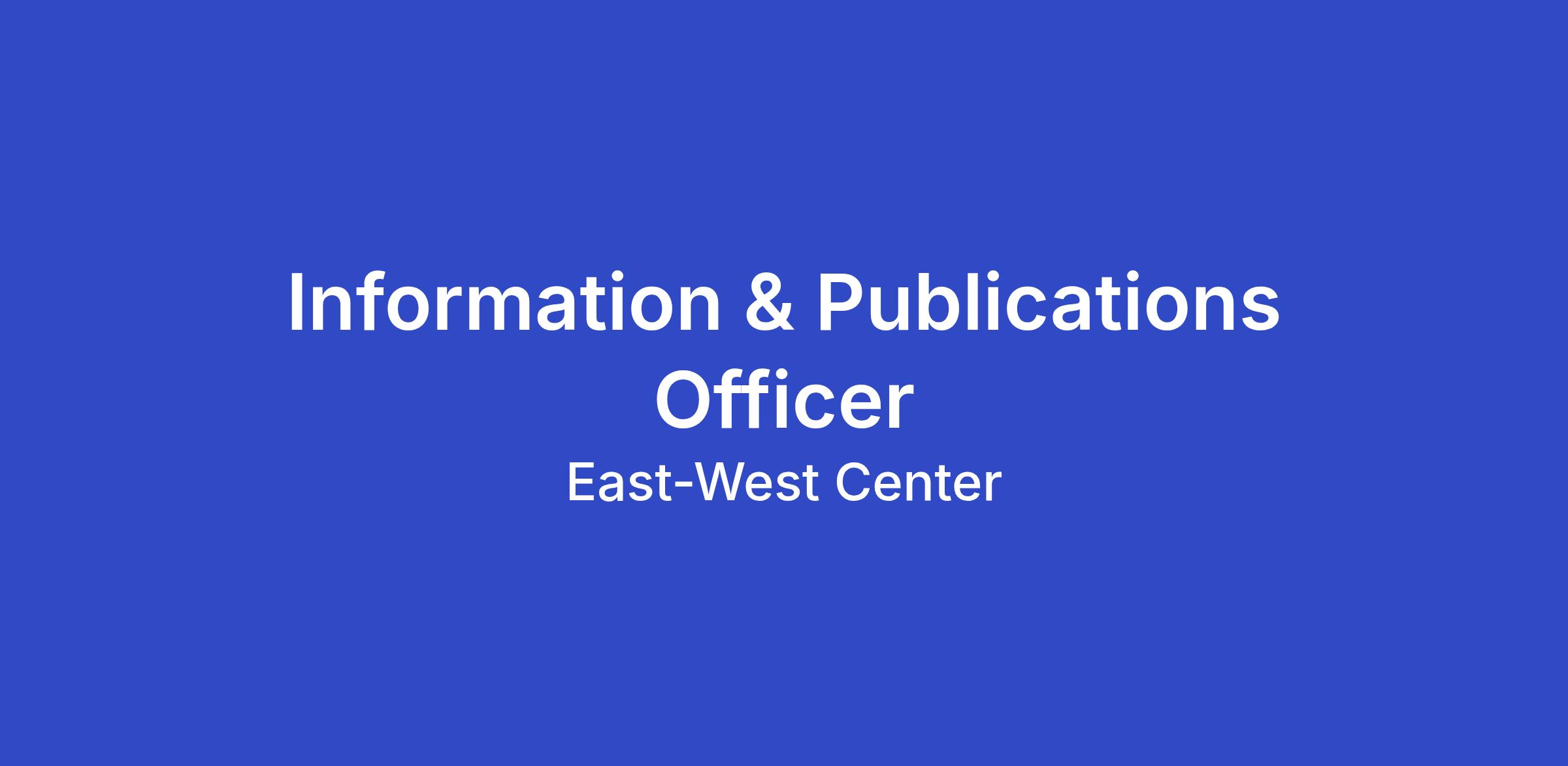 Our team is currently seeking an Information and Publications Officer to help drive positive change within the Pacific Islands region. In this role, you will oversee a wide range of publishing activities for the Pacific Islands Development Program (PIDP) that includes identification and solicitation of prospective work through editorial development and review, graphic production, and distribution and marketing. You will also contribute to Center-wide communications efforts that include curating, coordinating, and promoting activities that support and align with EWC communications strategy.