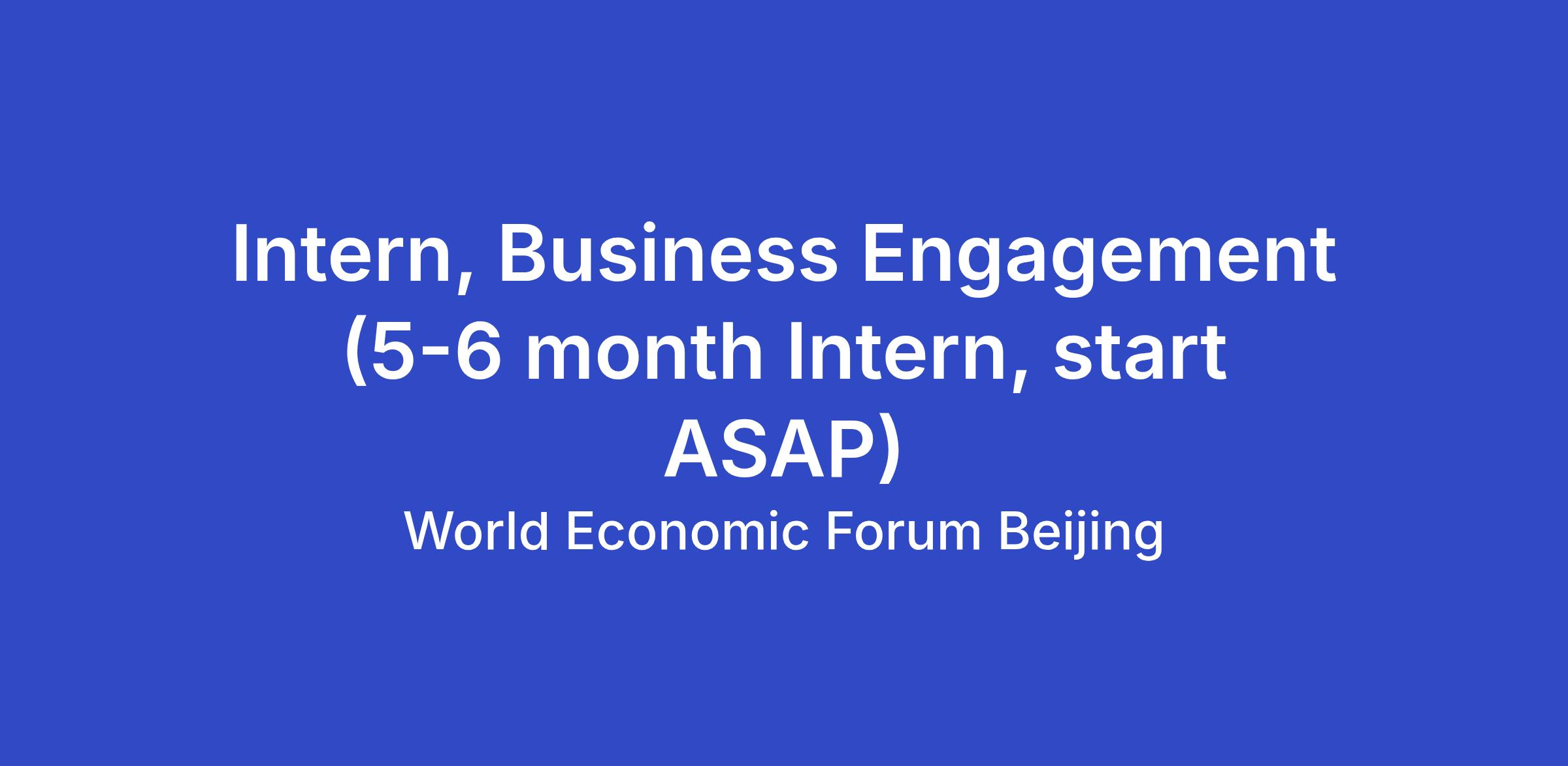 China Business Engagement Group develops and maintains business members and partners headquartered in Greater China and ensures their successful engagement in Forum initiatives, projects and events across industry. This position is dedicated to supporting the Business Engagement team for AMNC 2026 and the ongoing partner engagement and development.