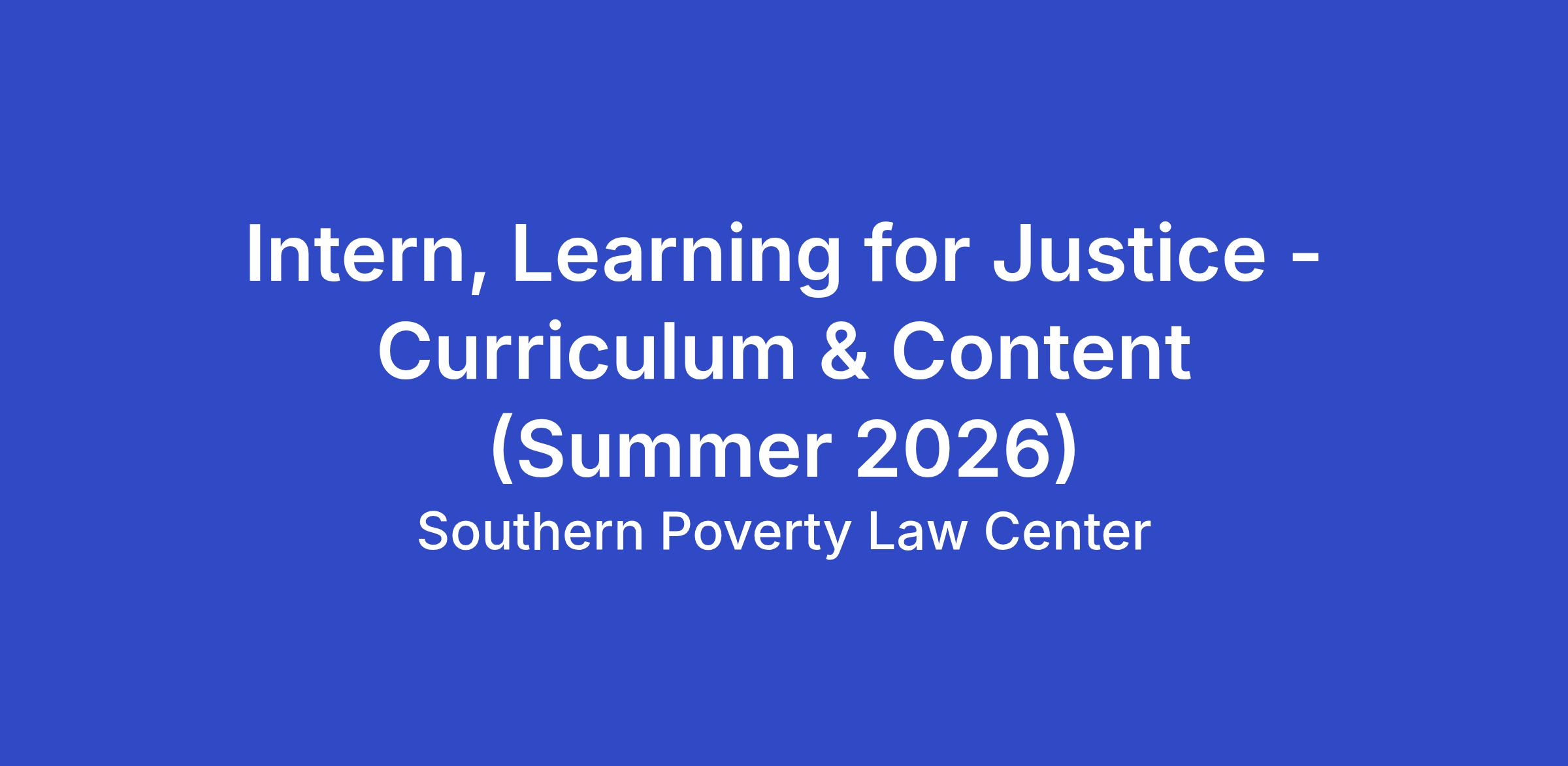 Intern, Learning for Justice - Curriculum & Content (Summer 2026)