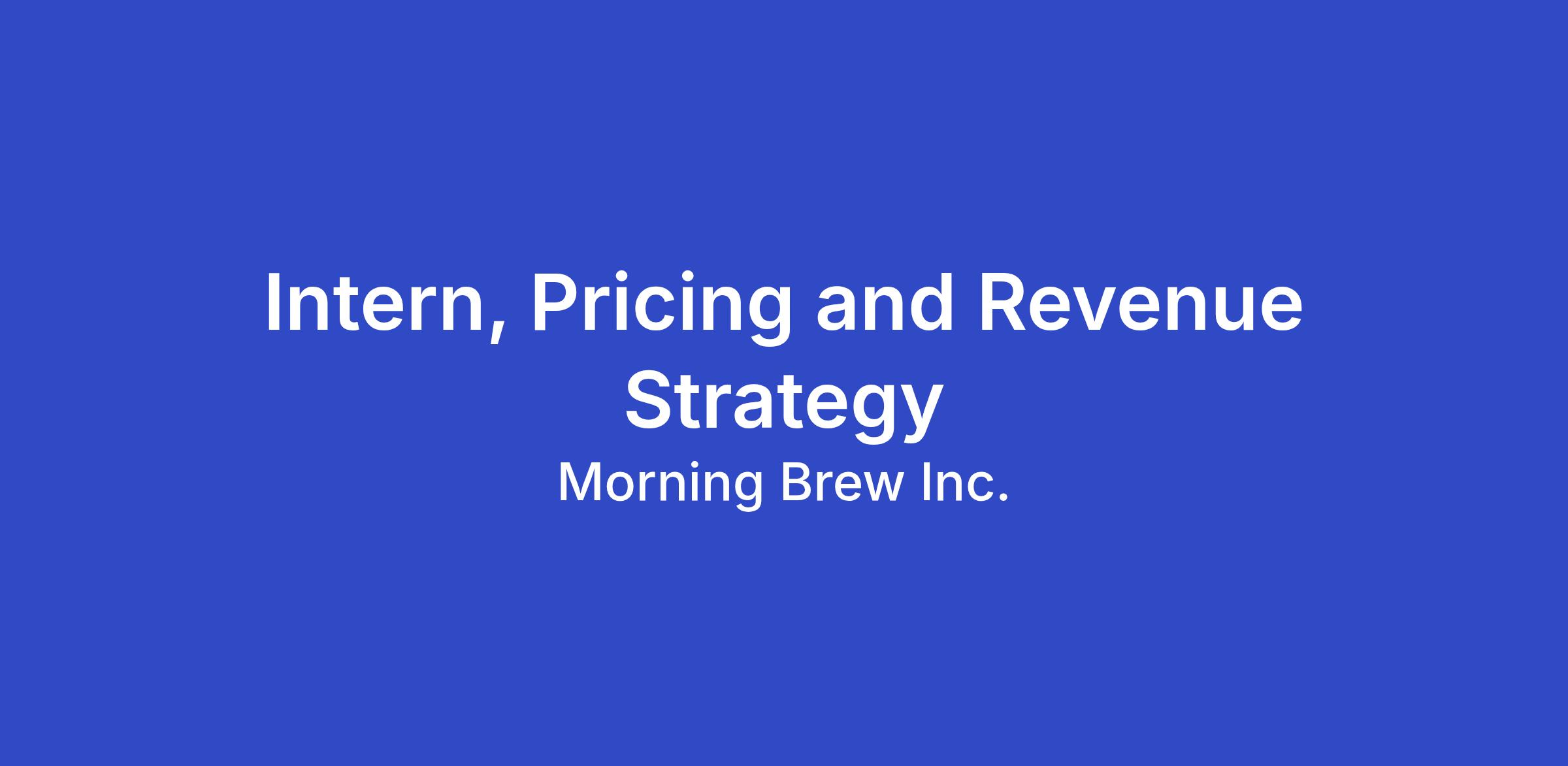 Morning Brew Inc. is looking for an analytical and detail-oriented Pricing and Revenue Strategy Intern. They will help oversee revenue systems and assist in reporting requests and insights based on data.