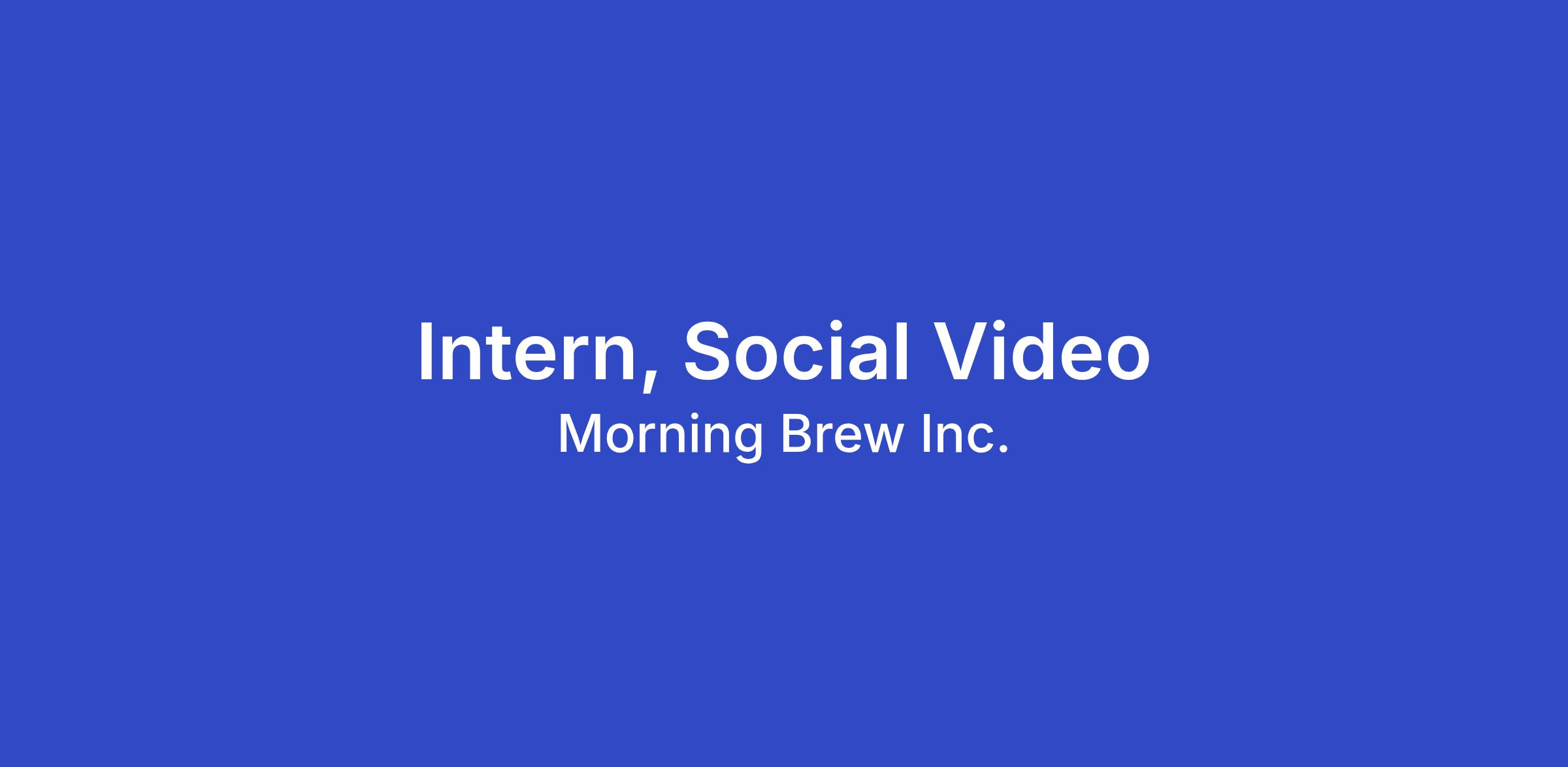 Morning Brew Inc. is looking for a social video intern who can assist the social video team with research, production, and content publishing for the flagship Morning Brew social accounts. The ideal candidate will possess a combination of in-depth research and writing skills, with some technical video editing capabilities. They will have a passion for content creation and visual/humorous storytelling.