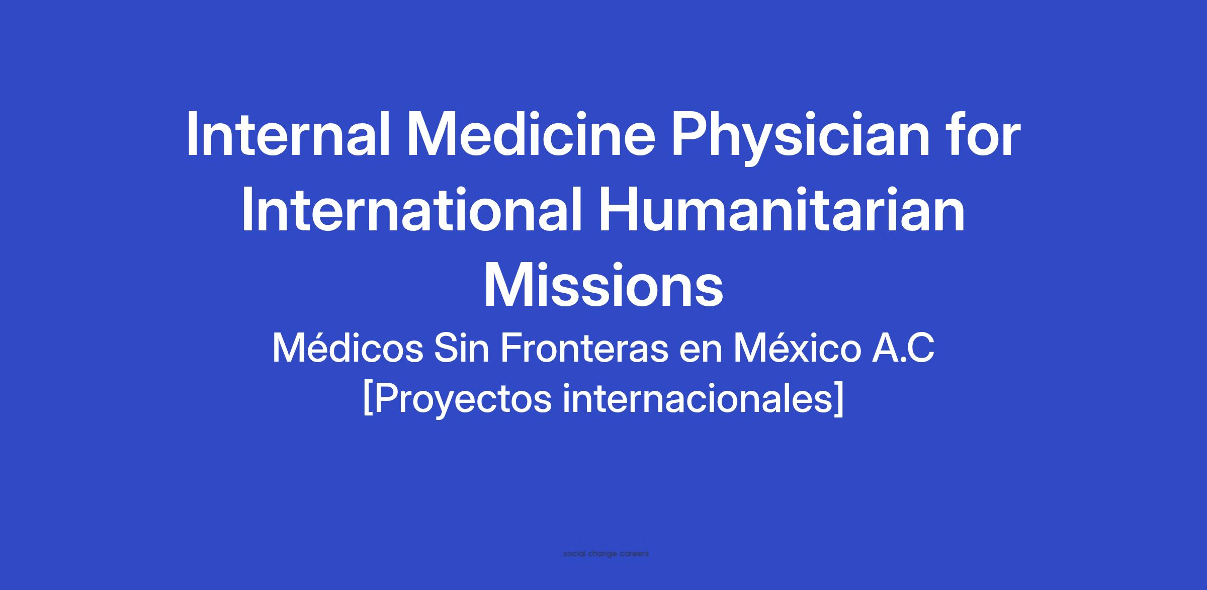 - Essential: Experience in tropical medicine, post-registration experience in public health, gynecology and obstetrics, pediatrics, “A”, infectious diseases, HIV / AIDS / STD, TB, general medicine and / or minor surgery.