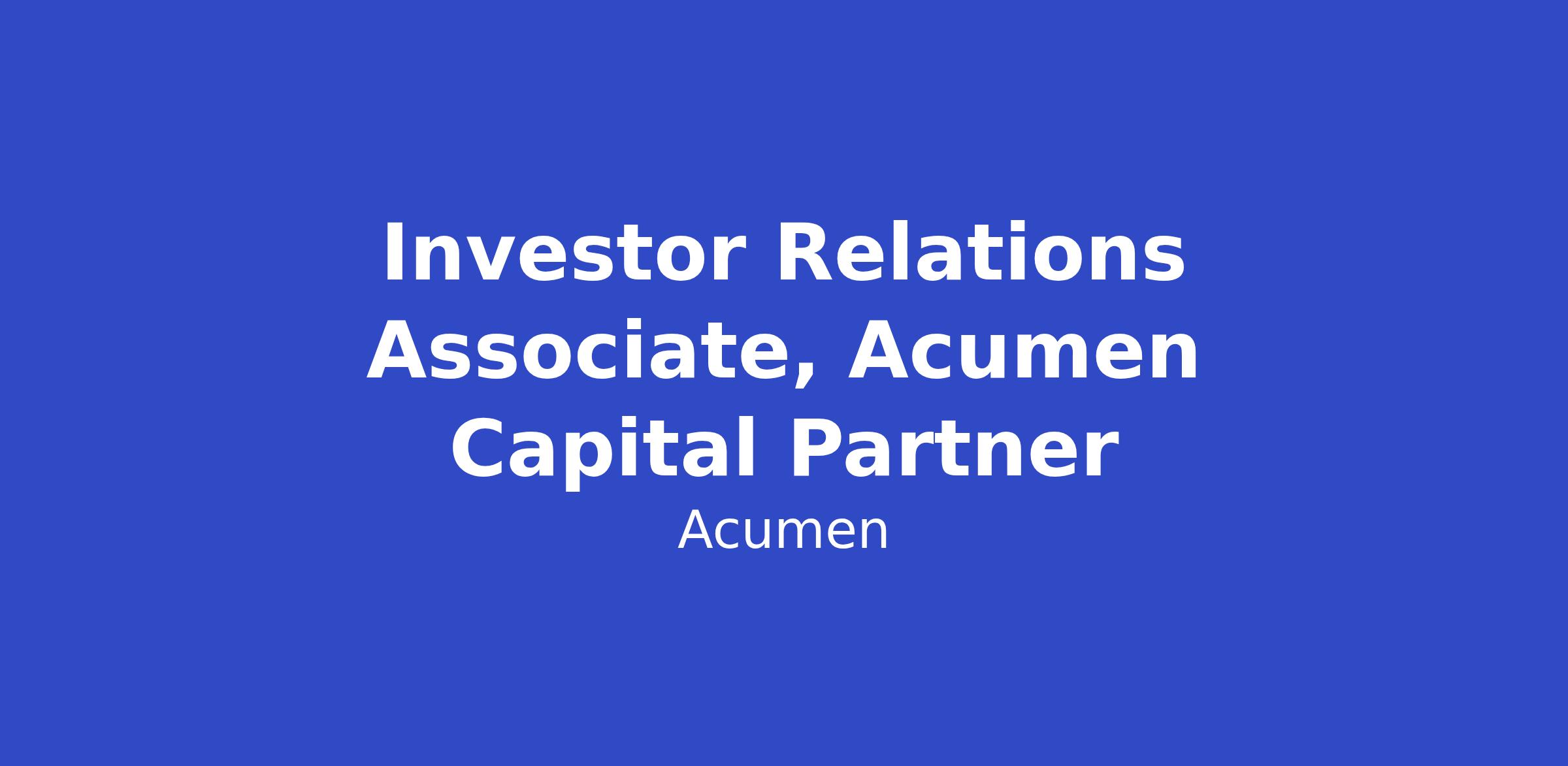 Investor Relations Associate, Acumen Capital Partner