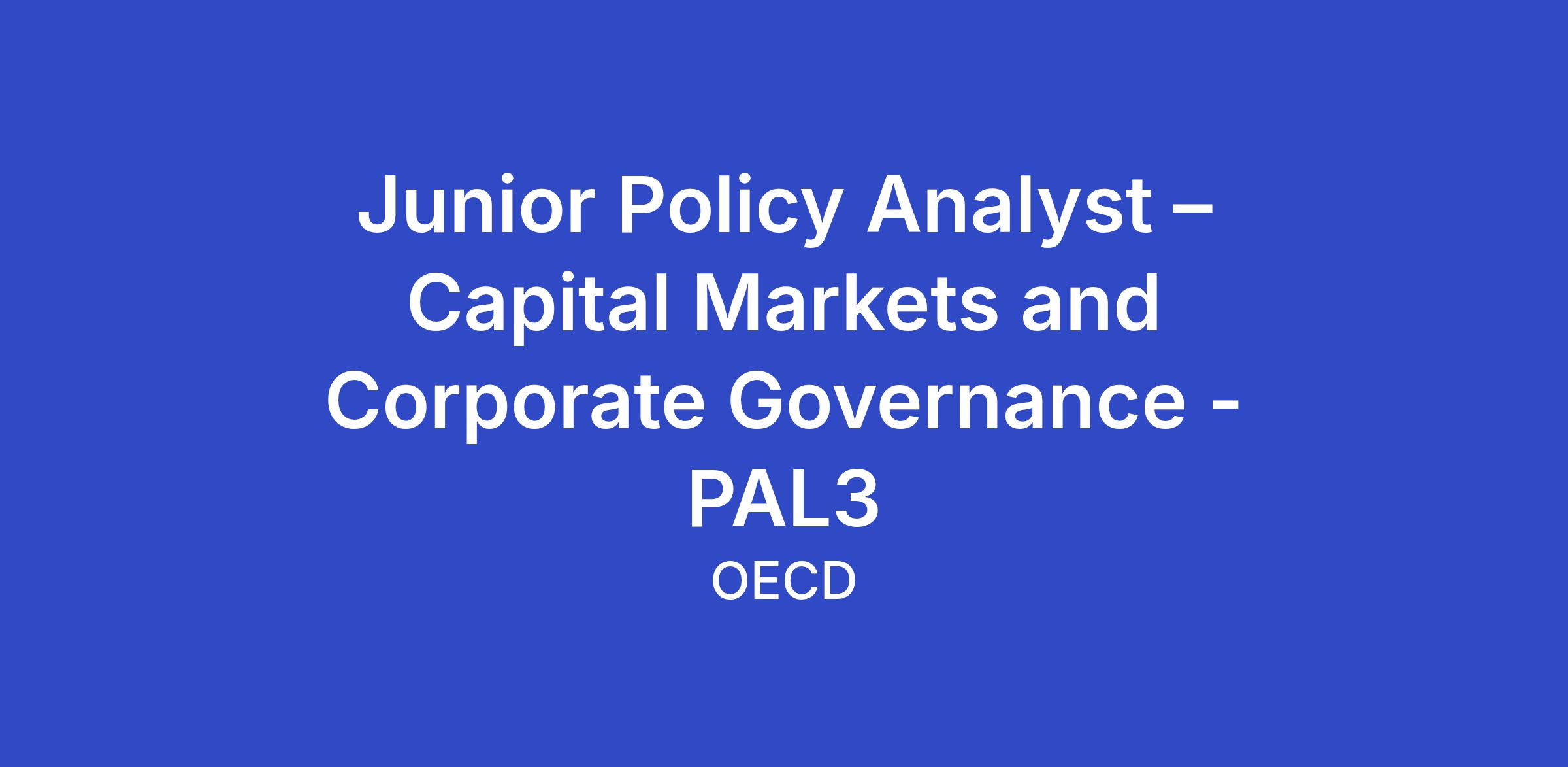 Junior Policy Analyst – Capital Markets and Corporate Governance - PAL3