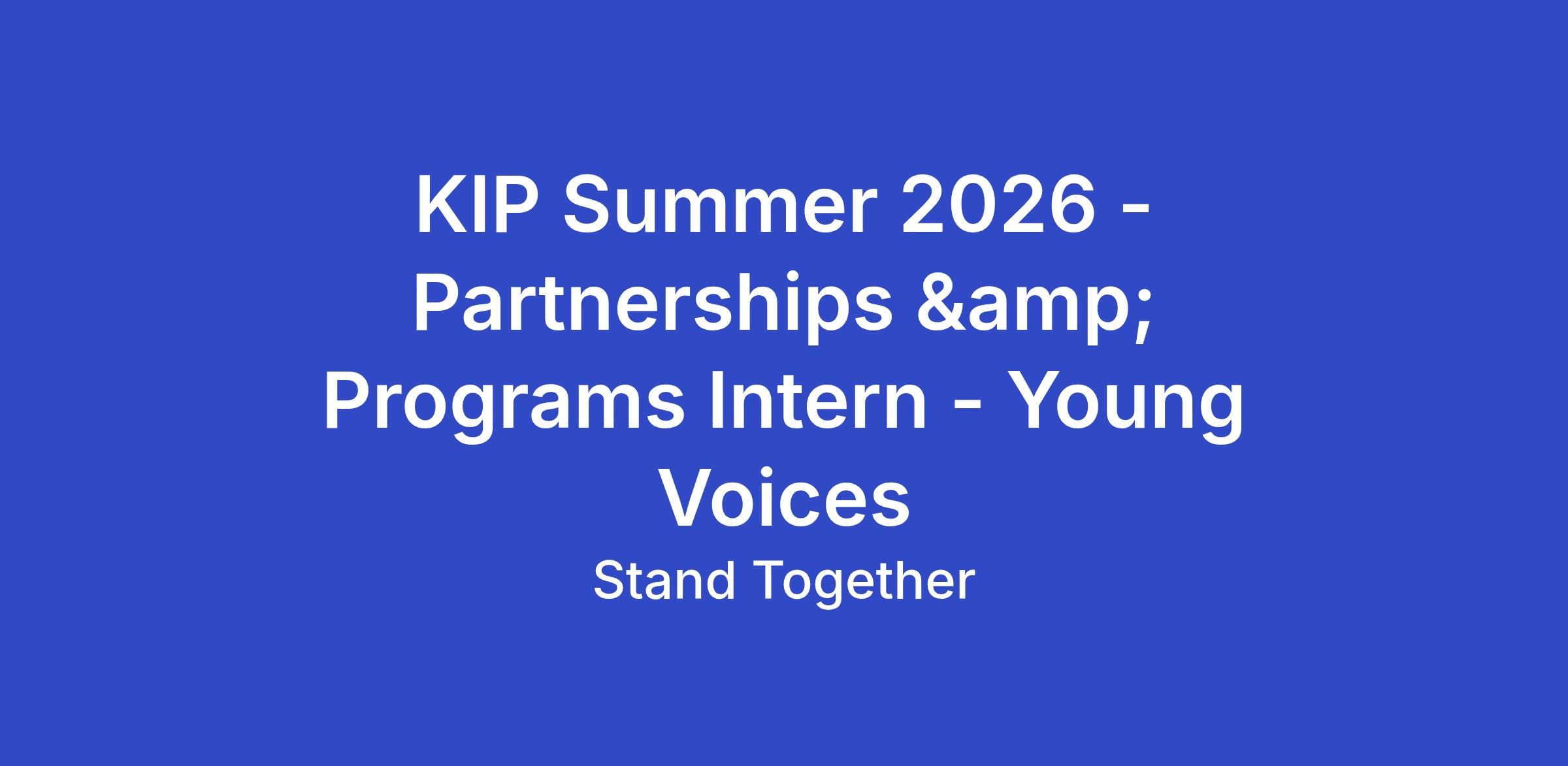 The Koch Internship Program (KIP) is a paid, 12-week experiential learning program run by Stand Together Fellowships that offers meaningful work experience at non-profits all over the United States tackling some of our nation's most pressing challenges. Eligible candidates will be geographically located within the U.S. and authorized to work in the U.S. through the duration of the program.