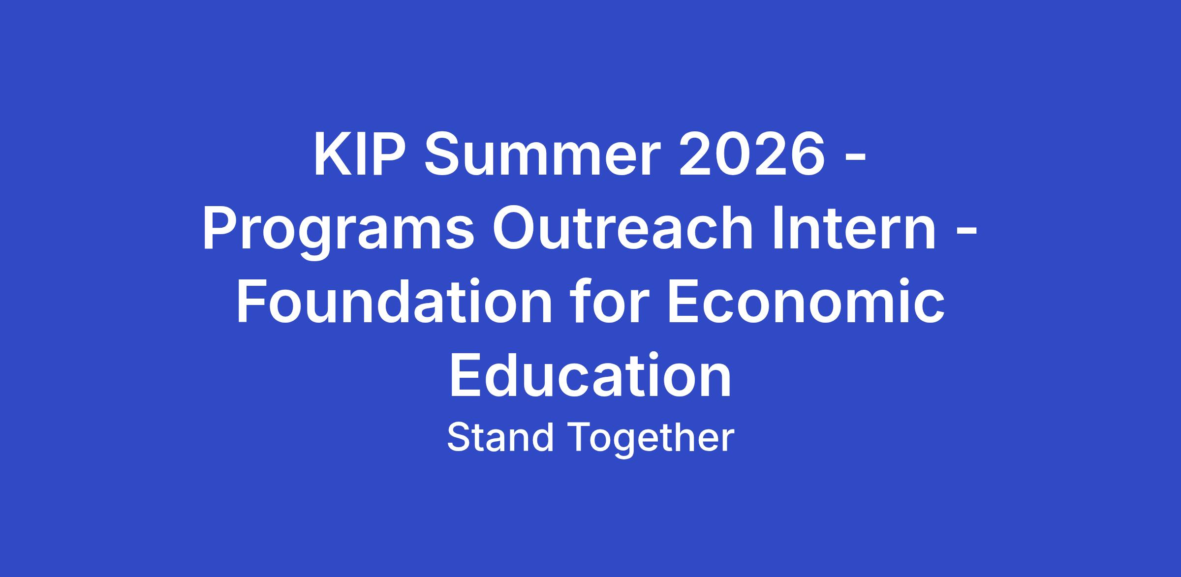 The Koch Internship Program (KIP) is a paid, 12-week experiential learning program run by Stand Together Fellowships that offers meaningful work experience at non-profits all over the United States tackling some of our nation's most pressing challenges. Eligible candidates will be geographically located within the U.S. and authorized to work in the U.S. through the duration of the program.