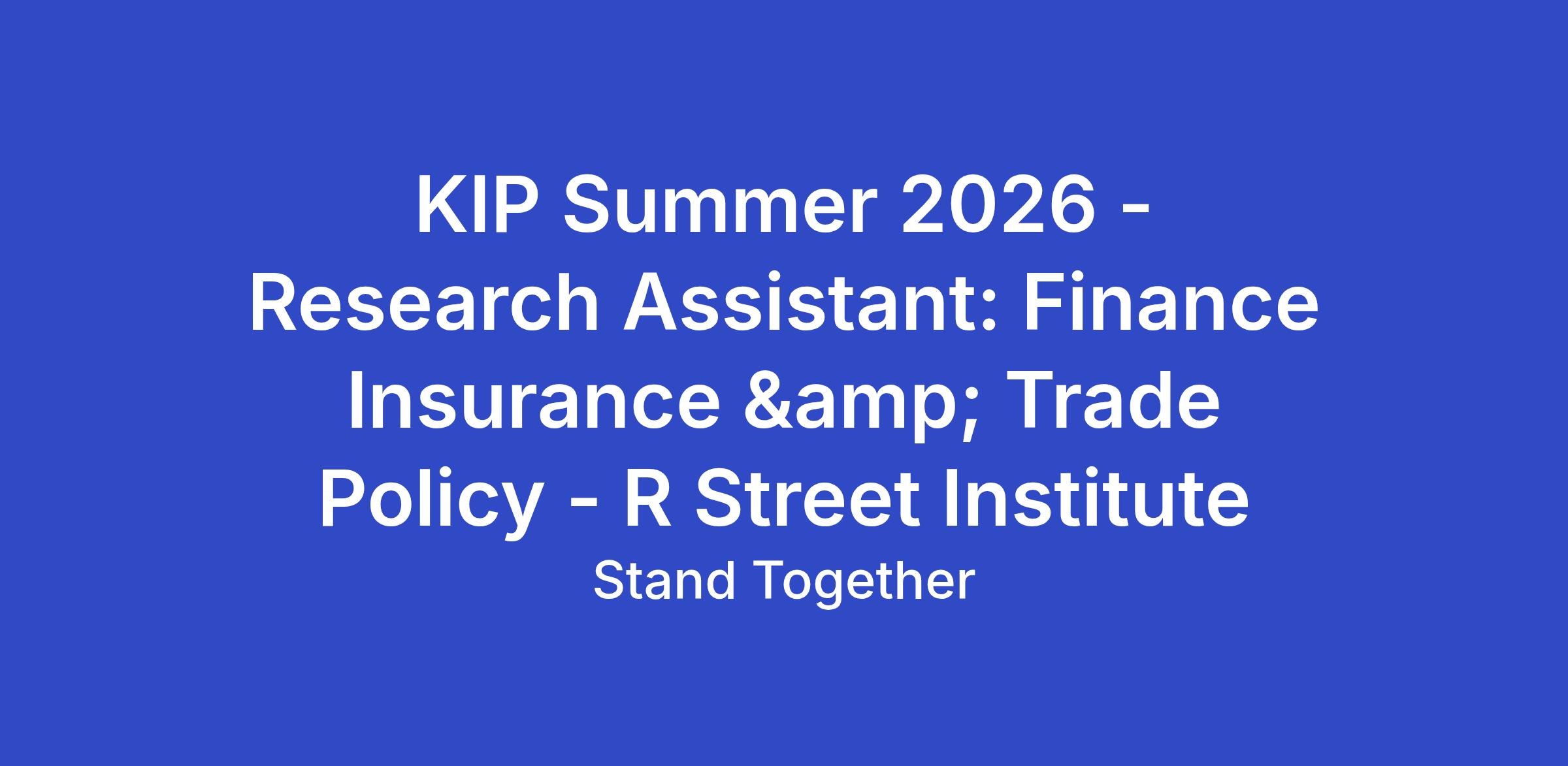 Founded in 2012, the R Street Institute is the leading think tank engaged in policy research in support of free markets and limited, effective government. We work to bolster American innovation, increase consumer choice and protect individual liberty and believe in smaller, smarter government. In this role you will work with the Finance, Insurance & Trade Policy team.