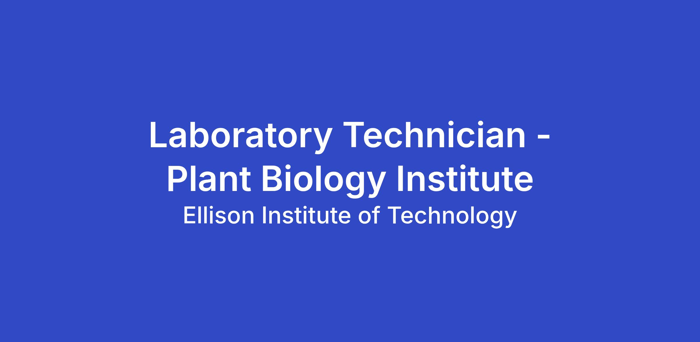 The Ellison Institute of Technology (EIT) is seeking a detail-oriented and proactive Laboratory Technician to provide essential laboratory and experimental support within its innovative Plant Sciences research programmes.