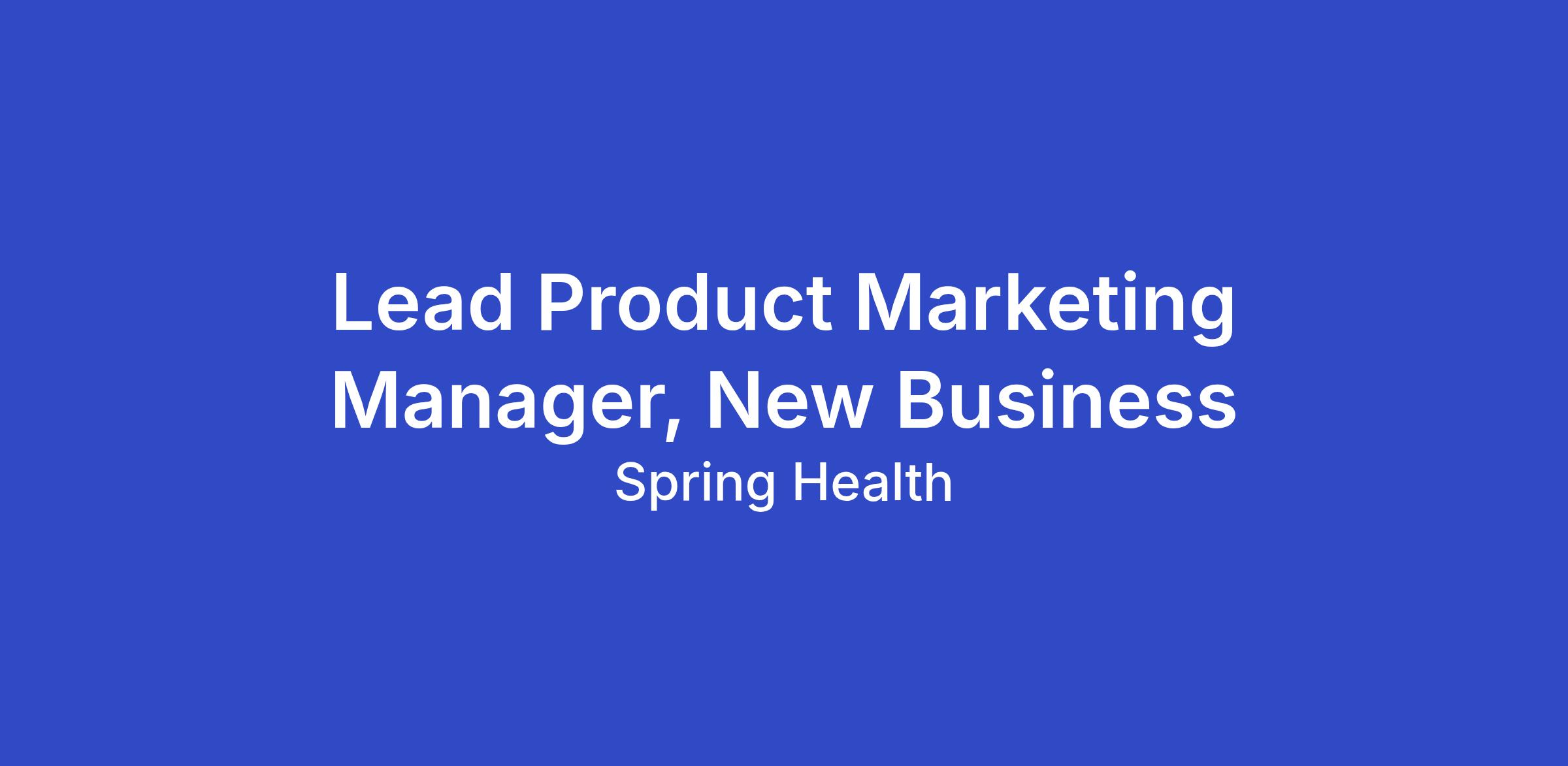 Reporting to the Director of Product Marketing, the Lead Product Marketing Manager, New Business will develop and execute the narratives, tools, and materials that drive acquisition of new customers across key verticals. This remote role is part of the Marketing team and plays a critical role in shaping how Spring Health shows up in the market to win strategic deals.