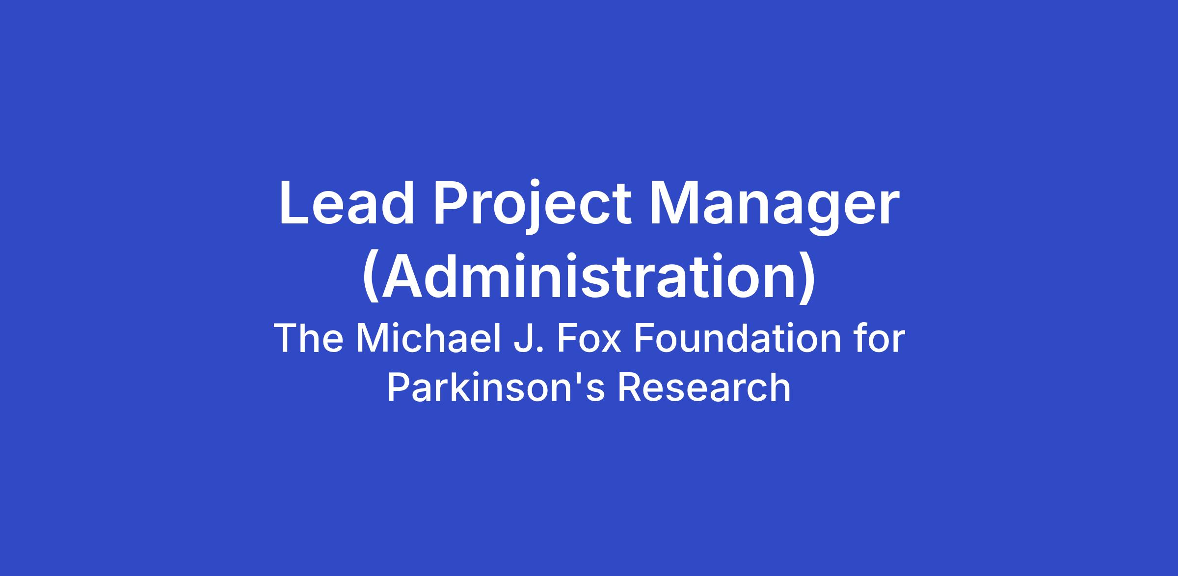 The Michael J. Fox Foundation for Parkinson’s Research (“the Foundation”) is seeking top talent for its Lead Project Manager position. Reporting to the SVP, Head of Business Operations, this position oversees the planning, execution, and delivery of complex projects from inception to completion. Working with internal stakeholders, including executive and senior leadership, this position helps to define new workflows and connect project work to other initiatives both within and outside of the Administration Business Unit.