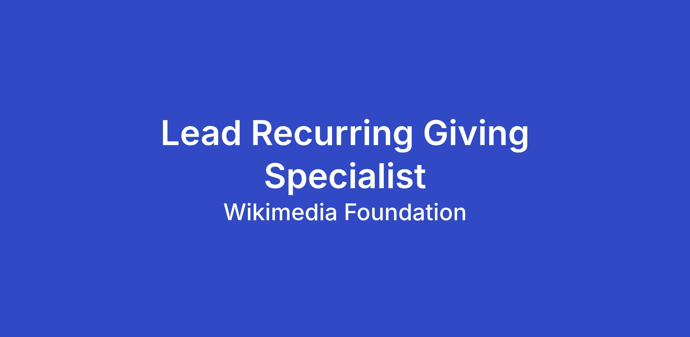 The Wikimedia Foundation is expanding its team and seeking an experienced fundraiser to own and grow our recurring giving program. This role is responsible for driving retention, upgrade, reactivation, and long-term value of monthly and annual donors, and for contributing to sustainer acquisition strategy in close coordination with the dedicated team.