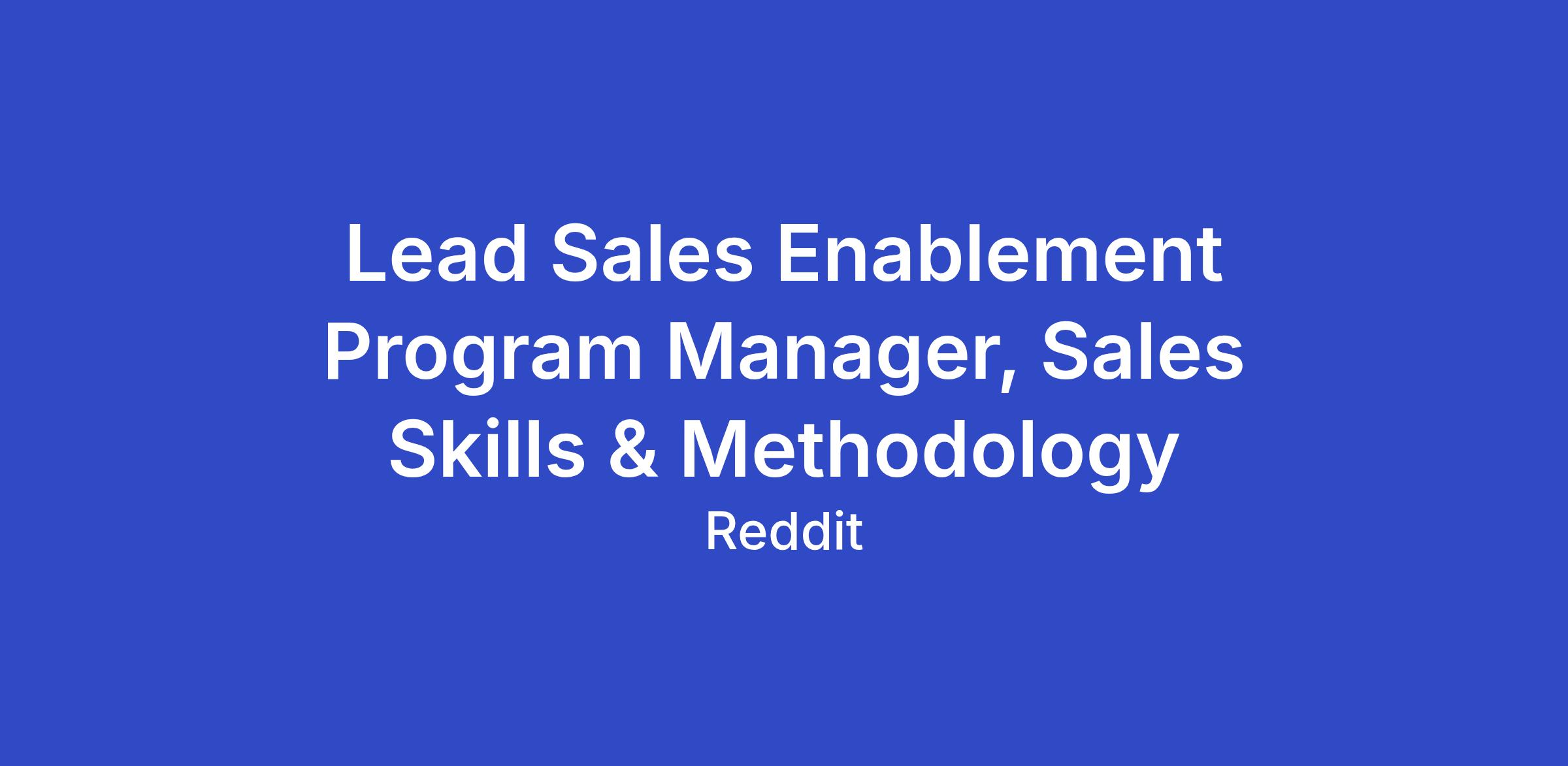 We’re looking for a globally minded Lead Sales Methodology Program Manager to define, operationalize, and scale a best-in-class sales methodology for Reddit’s global ads business. You will act as the operator and owner of our sales methodology, ensuring it is tightly aligned to our go-to-market strategy and consistently executed across regions, roles, and channels.