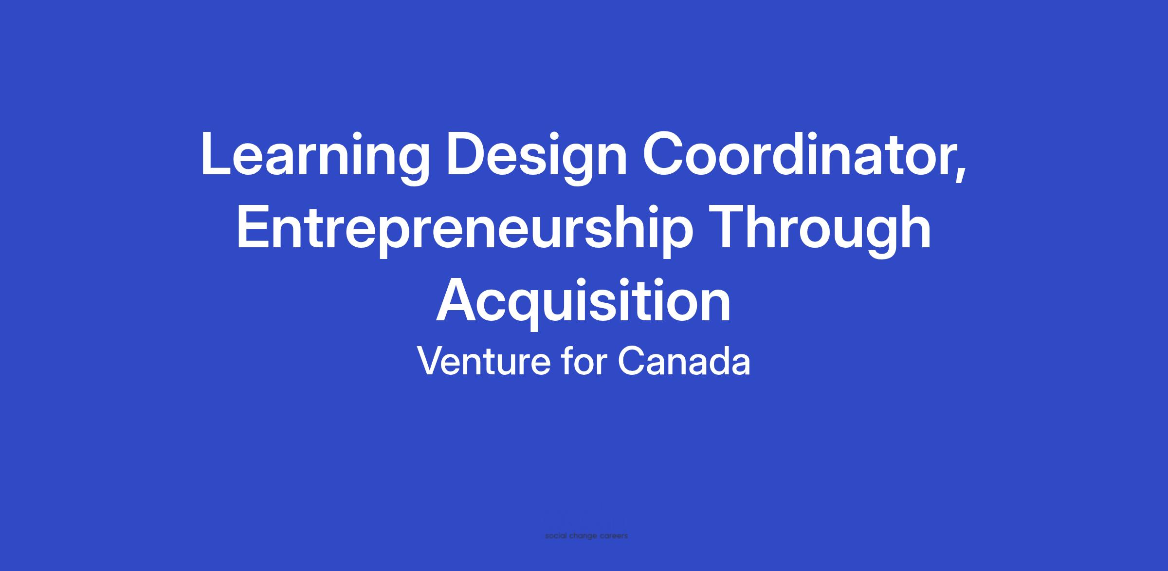 About the Learning Design Coordinator, Entrepreneurship Through Acquisition: