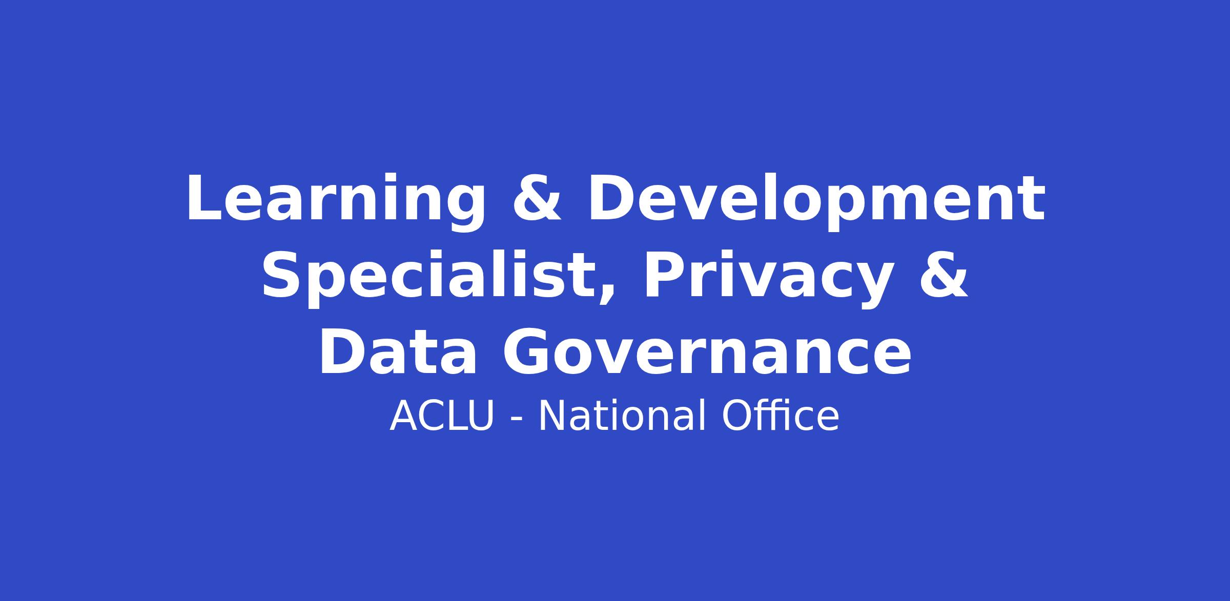 The ACLU seeks applicants for the full-time position of Learning & Development Specialist, Privacy & Data Governance in the Administration and Finance Department of the ACLU’s National office in New York, NY. This is a hybrid role that has in-office requirements of two (2) days per week or eight (8) days per month. This is a two-year term-limited position.