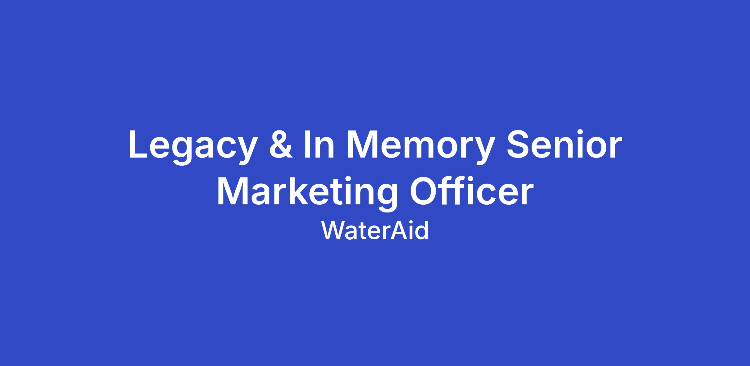 Every day, millions of people live without clean water, decent toilets and good hygiene. WaterAid exists to change that – for everyone, everywhere. Join us as the Legacy & In Memory Senior Marketing Officer, and your energy will help unlock people’s potential and create a fairer future.