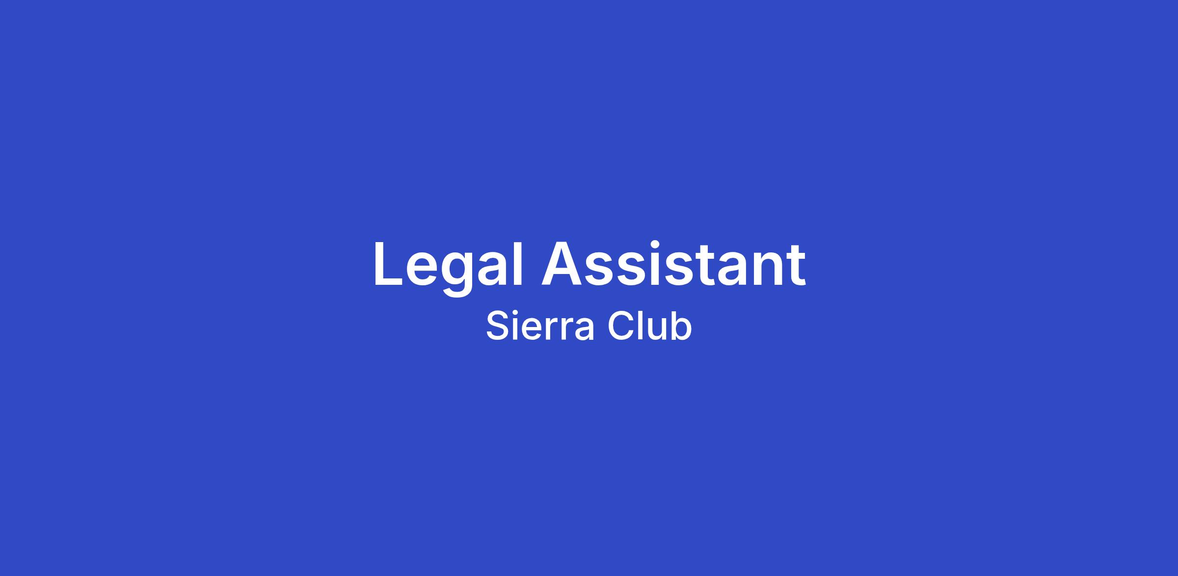 Scope: Sierra Club is seeking a Legal Assistant to join its national legal team as a Legal Assistant for Sierra Club’s Environmental Law Program (ELP). The Legal Assistant will provide litigation support to advance the mission of the Environmental Law Program and Sierra Club campaigns, conduct legal and factual research, and manage programmatic aspects of ELP.
