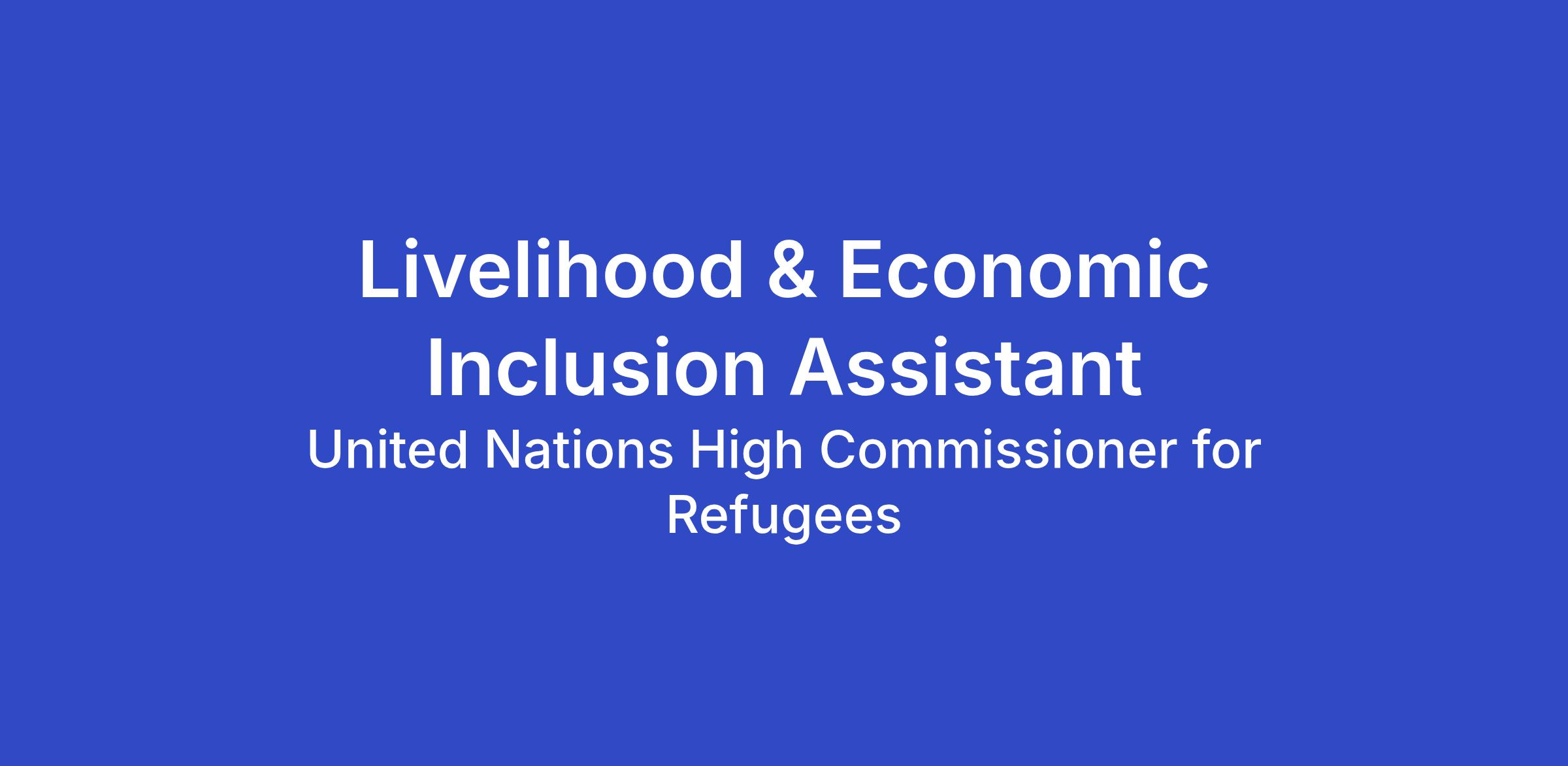 Prior exposure to UNHCR refugee operations and functions relating to office administration and programme activities. Knowledge about latest development in the livelihoods sector, including broader UN processes on the SDGs and the Global Compact on Refugees. Completion of UNHCR learning programmes or specific training relevant to functions of the position.