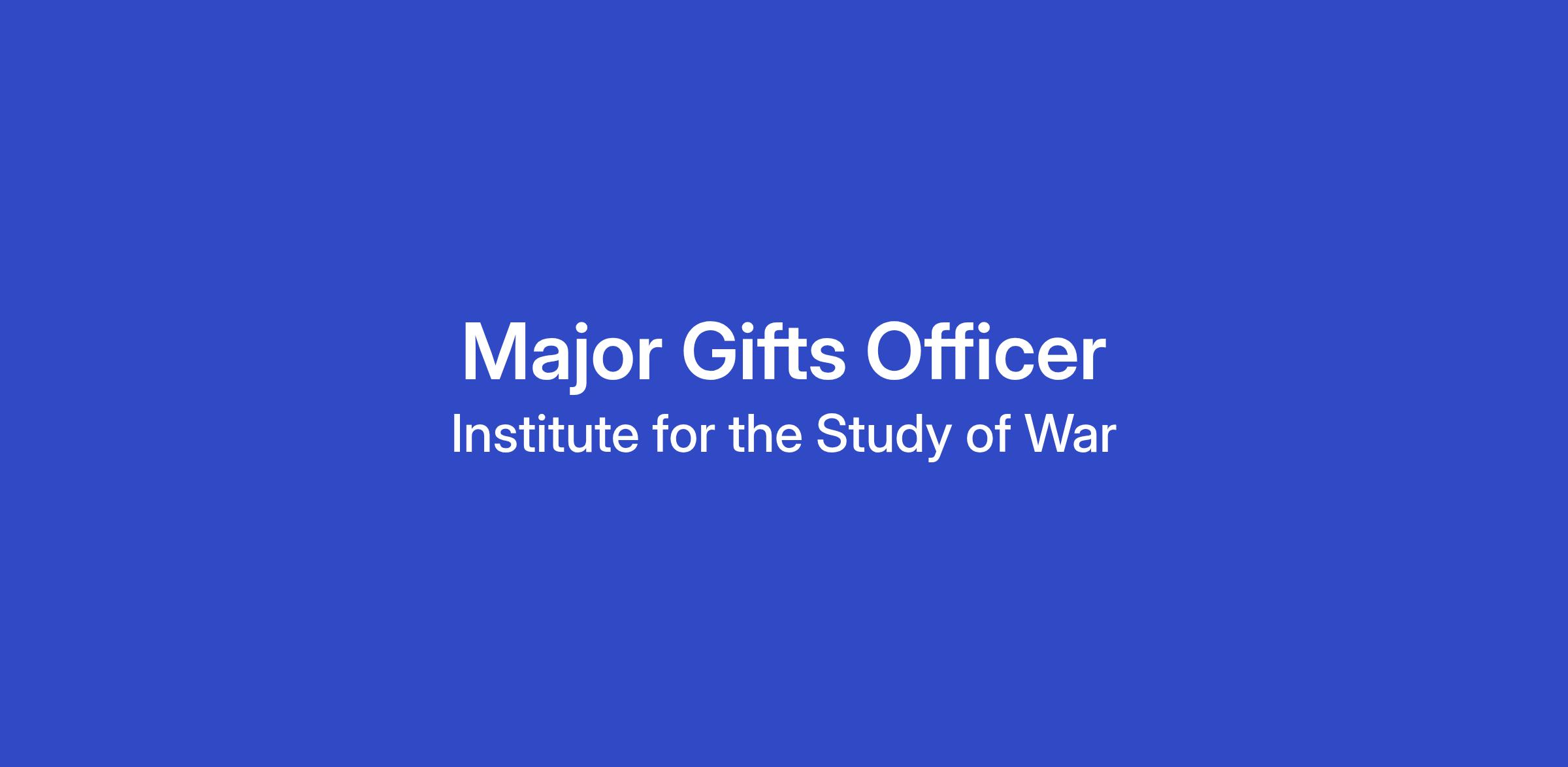The Institute for the Study of War (ISW) seeks a full-time, in-person Major Gifts Officer who will report to the Director of Development.