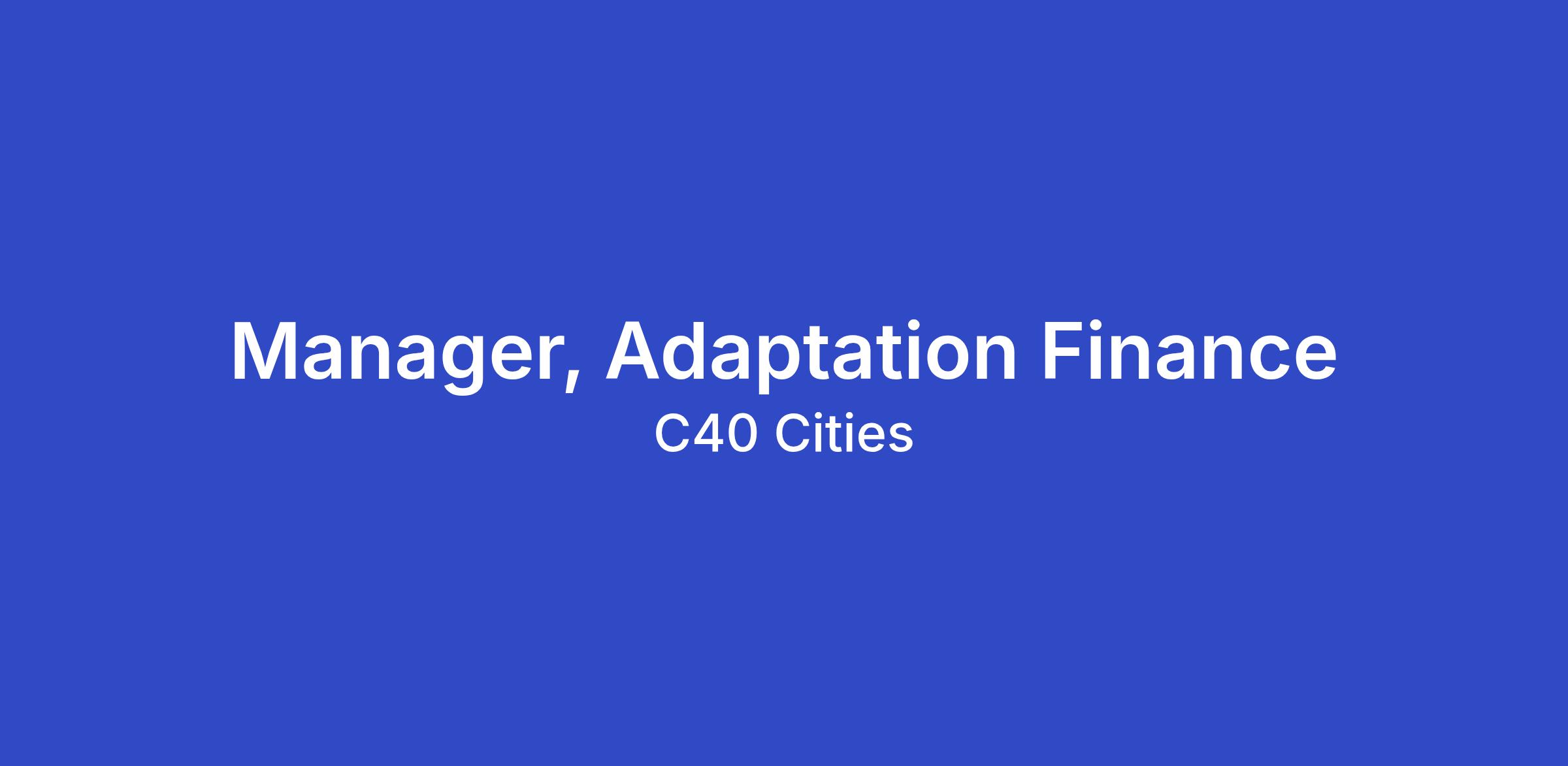 Reporting to: Global Head, Adaptation Finance, City Finance Programme