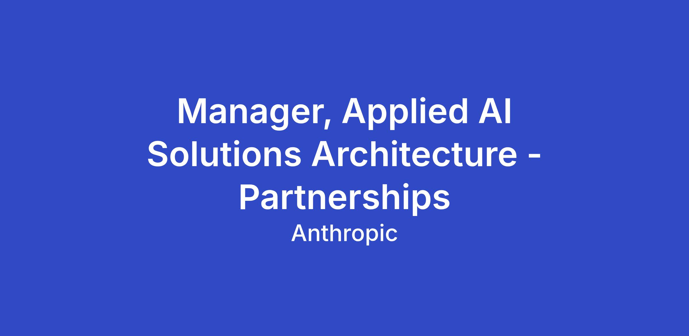 As the Manager of the Partnerships Applied AI Solutions Architect team, you will drive adoption of frontier AI by enabling deployment of Anthropic’s products (Claude for Enterprise, Claude Code, API) through our Global and Regional System Integrators, cloud partners (AWS, GCP, Azure), and strategic technology partners.