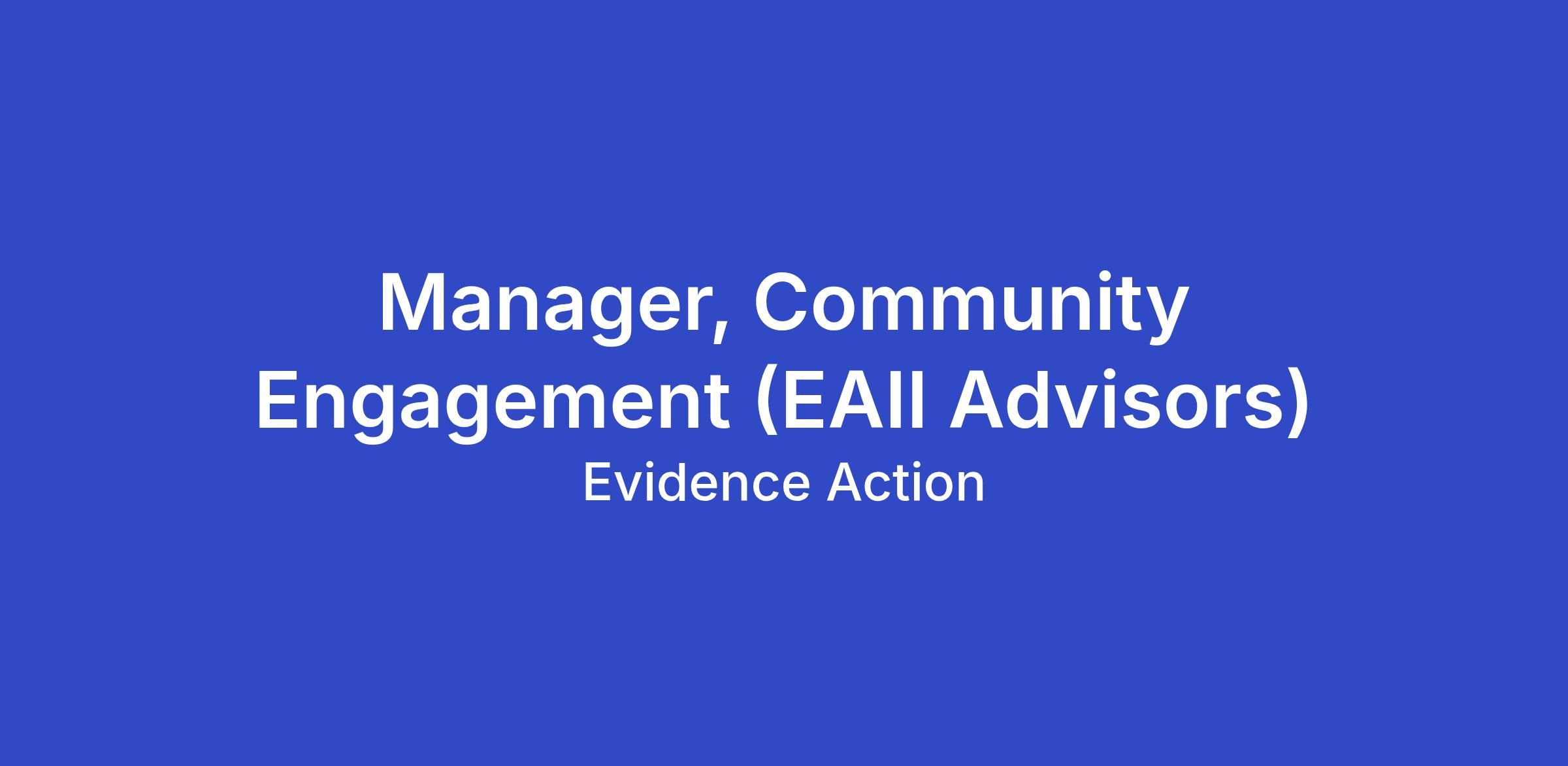 This position is with EAII Advisors, Evidence Action’s technical partner in India.