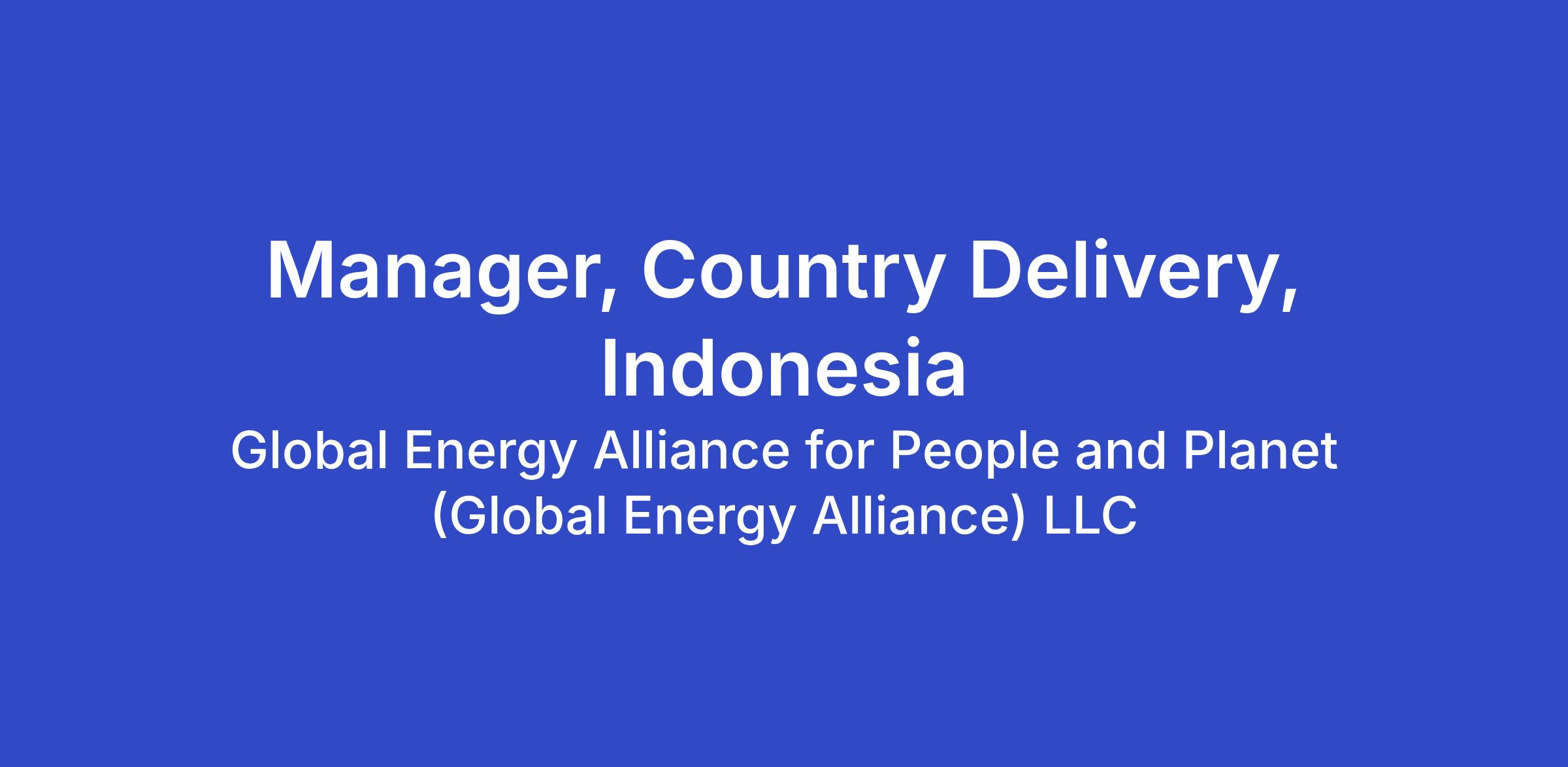 The Country Manager will support the Country Lead in planning, developing, and deploying programs in Indonesia. This will involve leveraging the full capacities of the Alliance to drive transformative energy transition under the two pillars: (i) Energy and Opportunity; and (ii) Grids for the Future. Following priority areas of work are integrated into the two pillars: