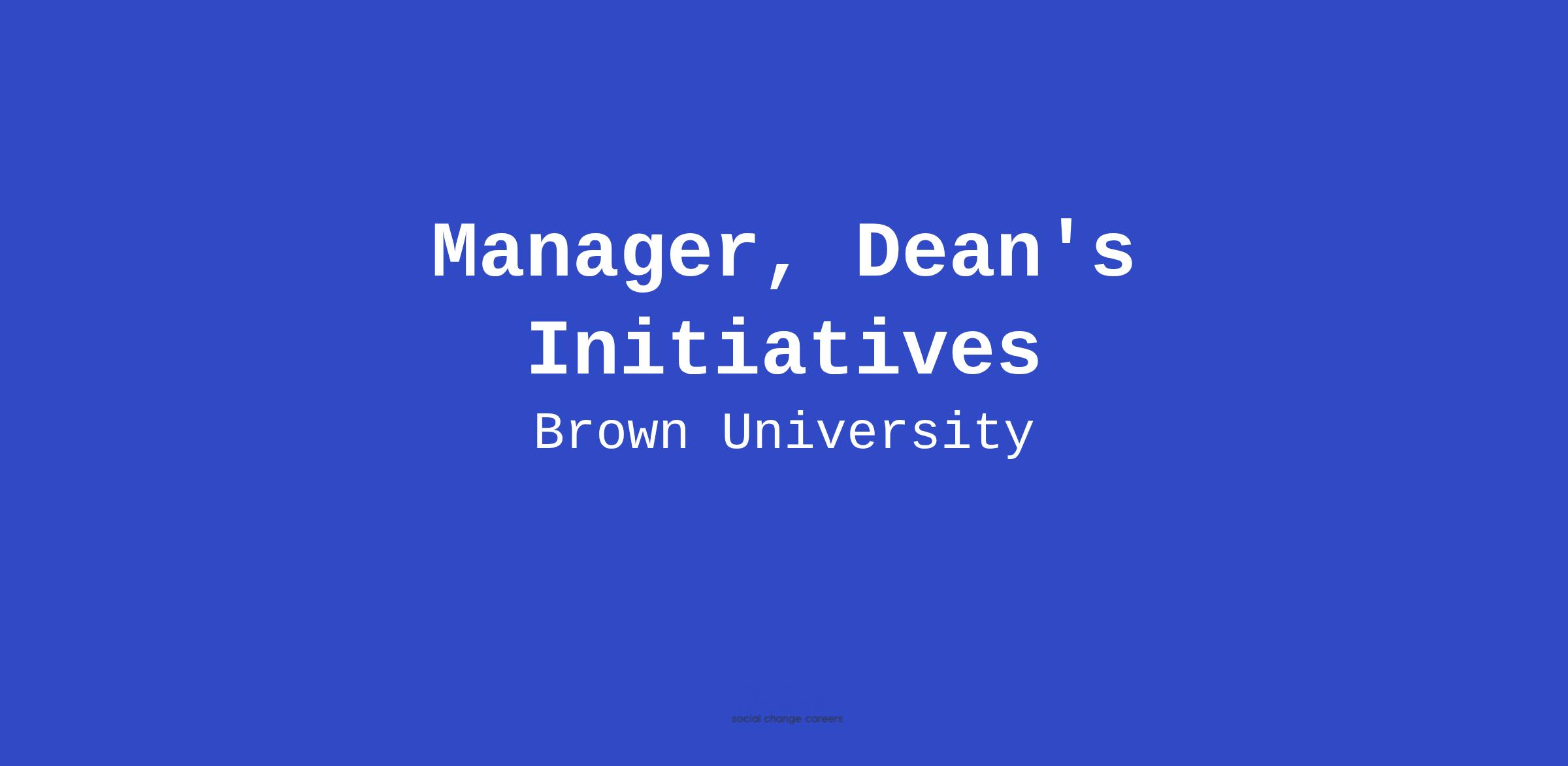 Job Description: About Brown: Brown University is a leading research university distinct for its student-centered learning and deep sense of purpose. Our students, faculty and staff are driven by the idea that their work will have an impact in the world. Brown University offers a flexible work/life balance; summer hours, winter break and a comprehensive Benefits package including time off, annual paid holidays; benefits offerings including health, dental, vision, tuition assistance, retirement, wellness, employee discounts and more. To learn about Brown University’s benefits, visit the University Human Resources web page here for further information. About the Opportunity: On July 1, 2025, Brown University launched The Thomas J. Watson Jr. School of International and Public Affairs, further building on its commitment to expand and strengthen research and teaching on the world’s most pressing economic, political, social and policy challenges. The Watson School will serve as home to a robust Master of Public Affairs program and a thriving undergraduate concentration, as well as faculty who conduct influential research with a global perspective. Through rigorous scholarship that crosses traditional academic boundaries, the Watson School will be driven by the conviction that policy-focused learning experiences and informed policy research solutions can change systems and societies for the better. The launch comes at a pivotal moment for the University, the nation, and the world. The School builds on more than a decade of growth within Brown’s Watson Institute for International and Public Affairs, which will serve as the foundation of the school, and offers significant opportunities for expansion in faculty, research, and educational programming. Responsibilities: The Manager, Dean’s Initiatives is a key strategic partner to the Dean who works to ensure the effective management and operation of the School. This role acts as a trusted advisor to the Dean, managing priorities, overseeing strategic initiatives, supporting the Dean’s communications, and providing data analysis and research to support the growth of the School. The Manager provides high-level analytical, managerial, and operational support, enabling the Dean to focus on strategic leadership and external engagement. The successful candidate will be outcome-oriented and responsive in their approach to their work. The successful candidate will also have outstanding organization and project management skills, to ensure that tasks do not fall through the cracks in a fast-paced environment. This position will also work with a broad range of partners across the School, University, and broader policy world in order to promote the work of the Dean. This requires being acutely attuned to workplace and team dynamics to as to navigate relationships with other senior staff, with staff and faculty within the School, and with academic and policy leaders. Major Responsibilities: Works directly with the Dean to organize and execute on all matters requiring the Dean’s attention. Manages and prioritizes access to the Dean’s time to ensure appropriate allocation to strategic priorities and key constituencies. Collaborates with others to set effective meeting agendas and tracks the status and progress of ongoing projects. Assigns responsibility for issues not requiring the Dean’s direct involvement and ensures timely completion. Supports the Dean’s internal and external communication by preparing memos, presentations, and briefings. Writes and drafts memos, emails, and other correspondence on behalf of the Dean. Prepares compelling presentation slides and briefing documents for various audiences. Creates clear and effective data visualizations to support communications. Supports the Dean’s decision-making and public engagement by conducting data analysis and research assistance. Qualifications: Education: Bachelor’s degree required; Master's degree in public policy, business administration, higher education, or a related field is strongly preferred. Experience: A minimum of 3-5 years of experience in project management, strategic planning, data analysis, or a related field. Experience in a higher education or non-profit setting is highly desirable. Analytical Skills: Demonstrated experience with quantitative and qualitative data analysis. Proficiency with statistical software (e.g., Stata, R, Python) and data visualization tools (e.g., Tableau) is a plus. Project Management: Outstanding organizational and project management skills with a proven ability to manage multiple projects simultaneously from inception to completion. Communication: Exceptional written, verbal, and interpersonal communication skills. Demonstrated ability to prepare executive-level presentations and briefings. Discretion & Judgment: Proven ability to handle confidential information with discretion and to navigate complex professional and political dynamics with sound judgment. Initiative: A proactive, self-starter who is motivated, outcome-oriented, and able to work independently in a fast-paced environment. Salary Grade: 10 Additional Information: Applicants are asked to include a resume and cover letter. All offers of employment are contingent upon successful completion of a background check. Brown cannot provide visa sponsorship for this position. This is a hybrid position based on Brown’s Providence campus, with the possibility of remote work for a day or more per week. Benefits of Working at Brown: Information on the Benefits of Working at Brown can be found here. Recruiting Start Date: 2025-09-30 Job Posting Title: Manager, Dean's Initiatives Department: Watson Institute for International and Public Affairs Grade: Grade 10 Worker Type: Employee Worker Sub-Type: Regular Time Type: Full time Scheduled Weekly Hours: 37.5 Position Work Location: Hybrid Eligible Statement on Equity, Diversity and Inclusion: All positions require demonstrated ability to wor