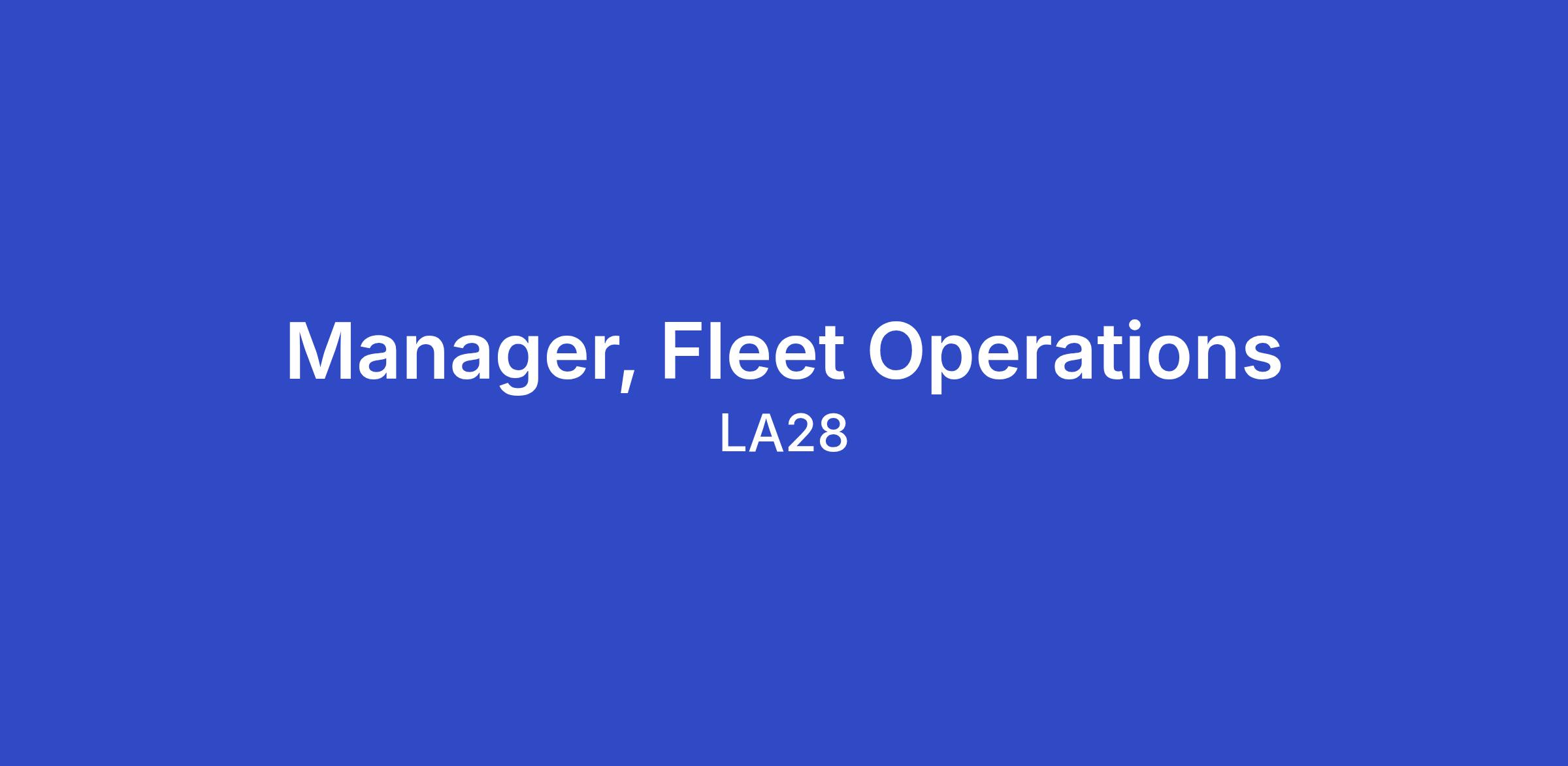The ideal candidate will be proactive, organized, and solutions-oriented, capable of operating with autonomy while maintaining alignment with broader fleet programs and priorities. The Manager, Fleet Operations will report to the Director, Vehicle Fleet Operations Director and work closely with leaders across LA28’s Functional Areas.
