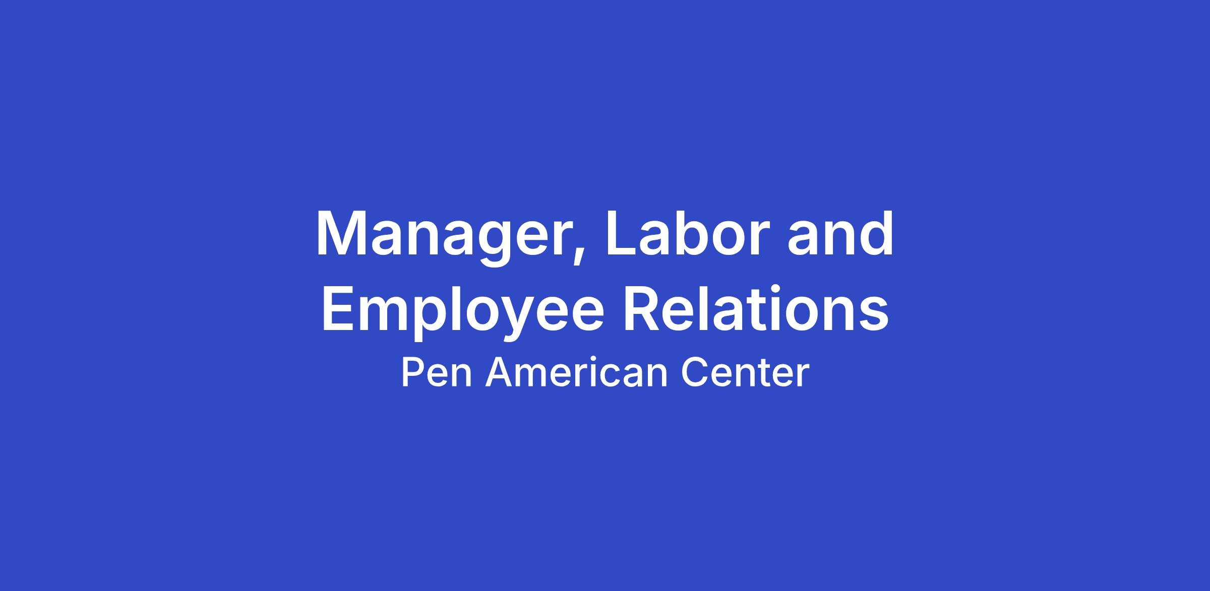 PEN America, a nonprofit organization working at the intersection of literature and human rights, seeks a labor and employee relations manager to support the Human Resources department. This position will play a central role in administering collective bargaining agreements, supporting managers and employees on labor-related matters, and ensuring compliance with applicable labor laws and organizational policies. This is a full-time position based in PEN America’s New York City headquarters and reports to the director, human resources.