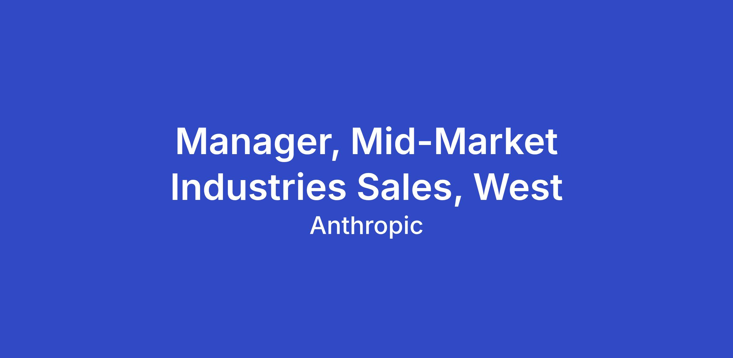 As the Manager, Mid-Market Industries Sales, West at Anthropic, you will build and lead a verticalized sales organization targeting companies with 500–2,500 employees across Financial Services, Insurance, Healthcare, and Life Sciences. You’ll own the strategy and execution for this high-growth segment, managing a team of specialized Account Executives organized by industry vertical who navigate complex but faster-moving sales cycles with mid-market buyers.