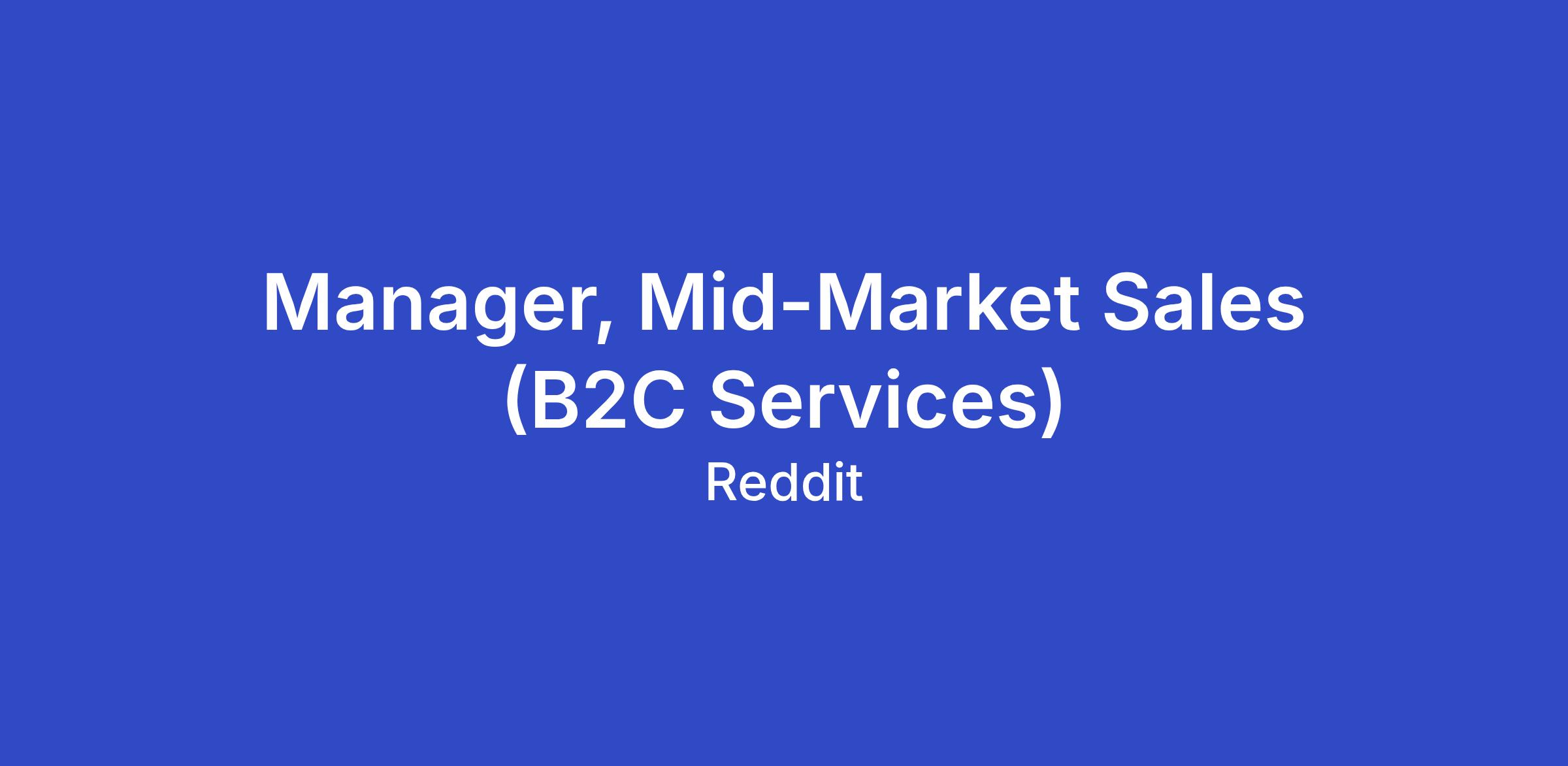 We are looking for a strategic, motivating sales leader to oversee our Mid-Market B2C Services business in Los Angeles. You will lead a talented group of Client Partners and Account Managers who help advertisers across industries like Tech, Travel, Education, Healthcare, and Finance find their home within Reddit’s 100,000+ active communities. Services businesses range from Fortune 100 brands to hyper-growth disruptors in high-value, high-intent categories who are shaping what’s next. These partners operate with longer sales cycles and higher purchase values, where Reddit’s leaned-in communities provide a unique competitive advantage.