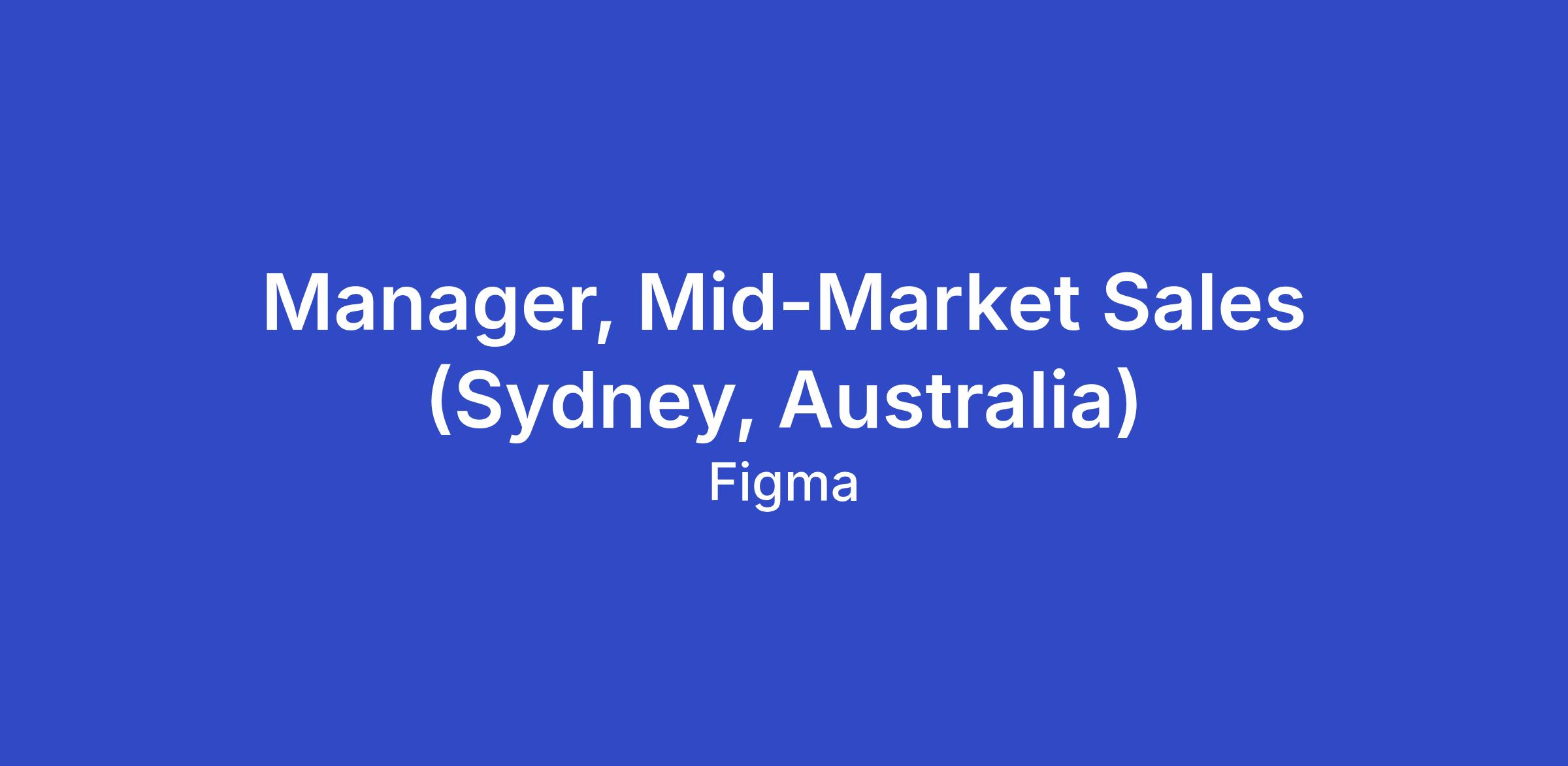 We're growing and moving fast. Our next team member will have an agile, dynamic approach, be comfortable embracing change, a true team-player, and love working with our growing footprint of Fortune 1000 customers. You won’t be alone! Figma has an incredible team and you’ll work closely with other groups including Support, Design, Engineering, Product Marketing, Customer Success, and Community. As a Manager, Mid-Market Sales, you will lead a team of Account Executives responsible for continuing the growth of our Enterprise product. You will report to the Senior Manager, Enterprise Sales.