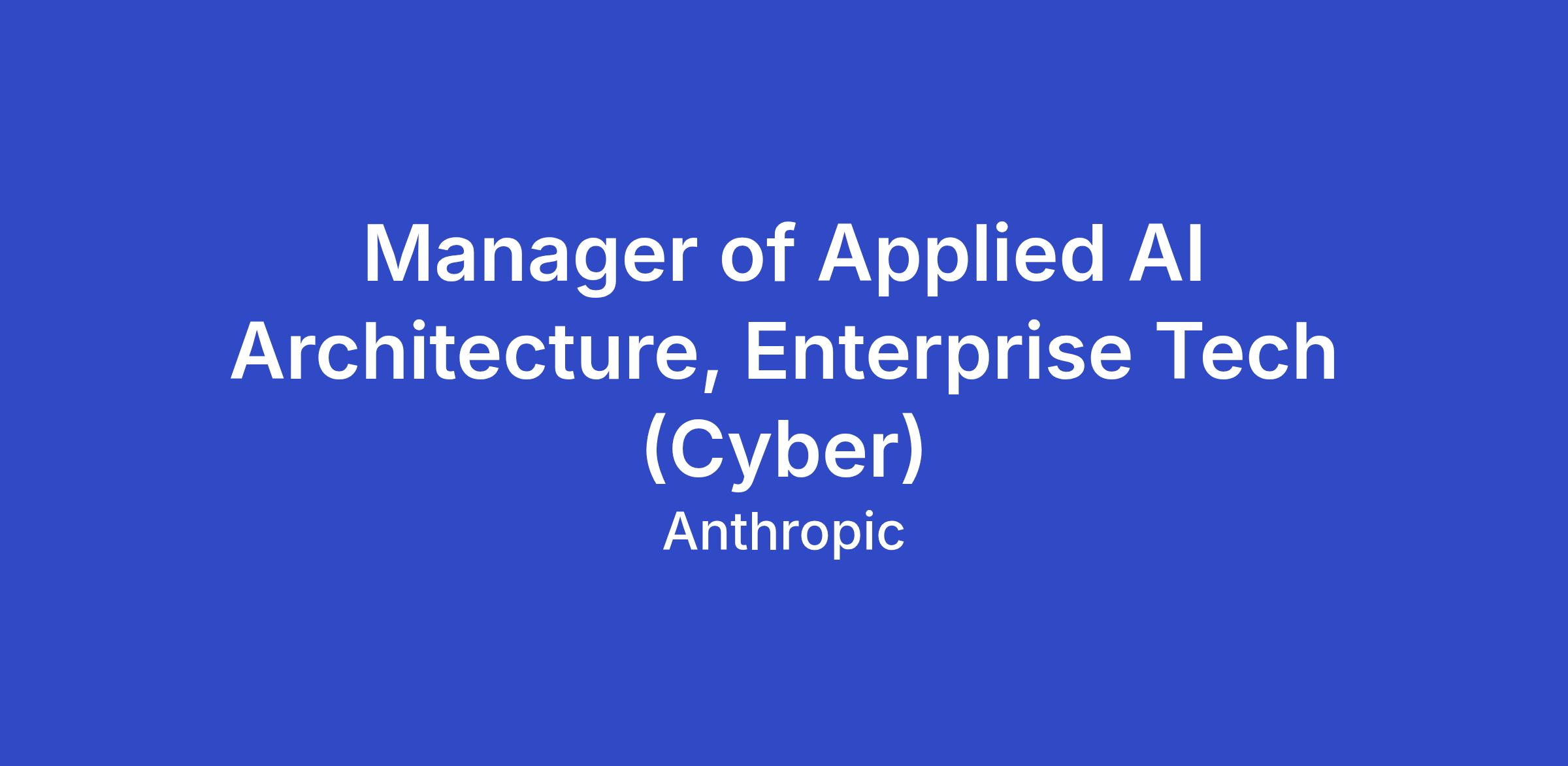 Manager of Applied AI Architecture, Enterprise Tech (Cyber)