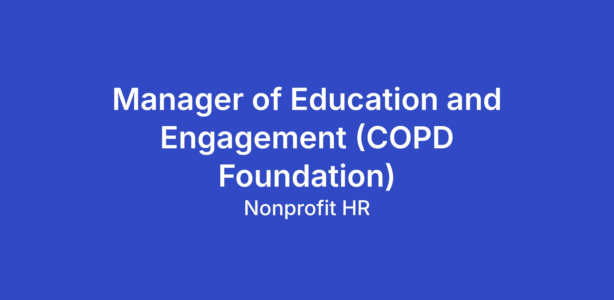 JOB POSTINGJOB TITLE: Manager of Education and Engagement DEPARTMENT: Public and Professional Education REPORTS TO: Director of Education FLSA STATUS: Full-time, ExemptSALARY: $70,000 - $85,000LOCATION: RemoteCOMPANY OVERVIEWAt the COPD Foundation, we are committed to improving the lives of individuals living with COPD and their caregivers through education, advocacy, and research. As we mark two decades of dedicated service, we are expanding our team and inviting talented individuals to join us on our mission. What sets us apart as an employer includes our legacy of impact, comprehensive benefits and healthcare package, work from home environment, and high growth of the organization with opportunities for advancement.POSITION OVERVIEWThe Manager of Education and Engagement is a remote position responsible for overseeing and executing educational initiatives for patients and healthcare providers at the COPD Foundation. The Manager of Education and Engagement will work closely with the Director of Education to plan and develop high-quality educational content for individuals living with COPD, their families, and the healthcare providers who care for them. This role requires the ability to work autonomously in a fast-paced, virtual environment.The ideal candidate will have a clinical background with experience in chronic pulmonary conditions, along with expertise in instructional design and curriculum development. They should also have a proven ability to manage multiple projects or priorities simultaneously while maintaining a high level of independence and self-direction in a remote setting. Experience with public health education programs, chronic disease patient education, and health care provider education are also preferred. KEY RESPONSIBILITIES- Serve as an independent program lead for COPD Foundation educational initiatives.