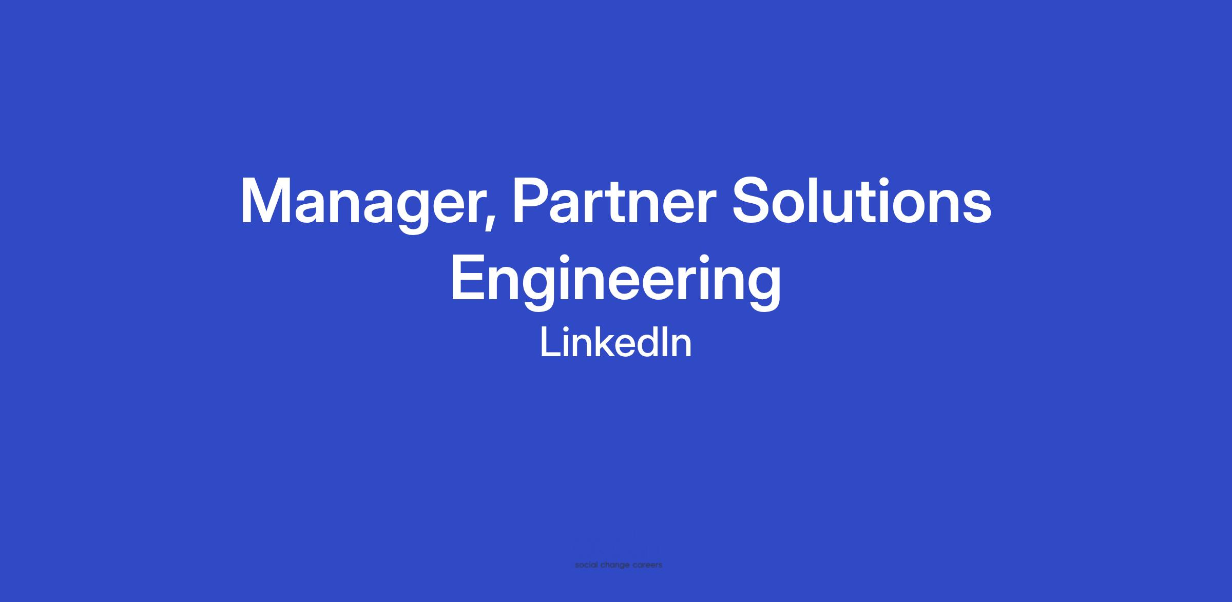 The Partner Solution Engineering Manager will have deep expertise in LinkedIn’s API products and technical solutions. You will manage a global team of solution engineers and work closely with LinkedIn’s business development, product & engineering teams at LinkedIn to scale our enterprise partner offerings for our mutual customers. You will develop strong relationships with internal stakeholders to launch new API products and help enterprise partners integrate. You will drive adoption of LI’s API products in the product and services marketplace by managing a portfolio of high touch enterprise partners or lead product adoption across a broad base. You will be responsible for strategic planning and performance management. You should understand feature gaps in API, product, or partner offering and build solutions to address gaps and drive client success. Your team should understand and document the enterprise partner’s technical implementation nuances. Facilitate enterprise partners with onboarding, provide technical development and coding support, and provide guidance to partners during beta and pre-launch activities. You should also bring innovation with respect to automating partner onboarding experience.