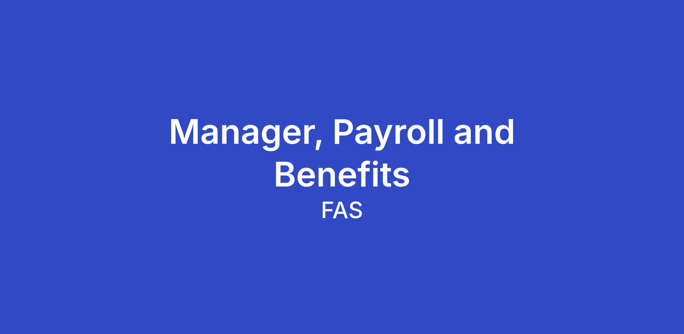 Manager, Payroll and Benefits