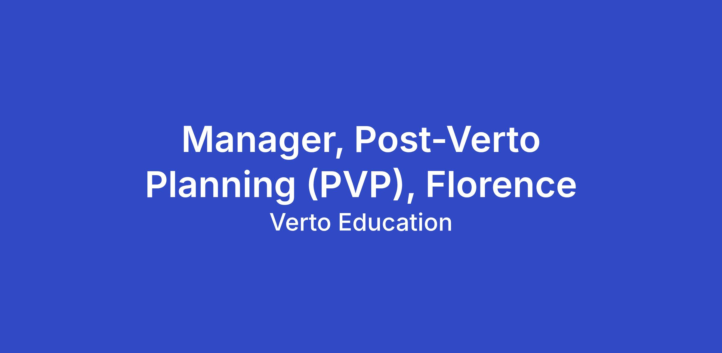 The Manager, Post-Verto Planning (PVP) is a specialized, Florence-based role dedicated to empowering students to confidently navigate their next steps after Verto through individualized guidance, strategic planning, and dedicated support —equipping them to pursue their goals with clarity and purpose. This position focuses exclusively on the Post-Verto Strategy (individualized guidance) and the Post-Verto Plan (the final pathway).