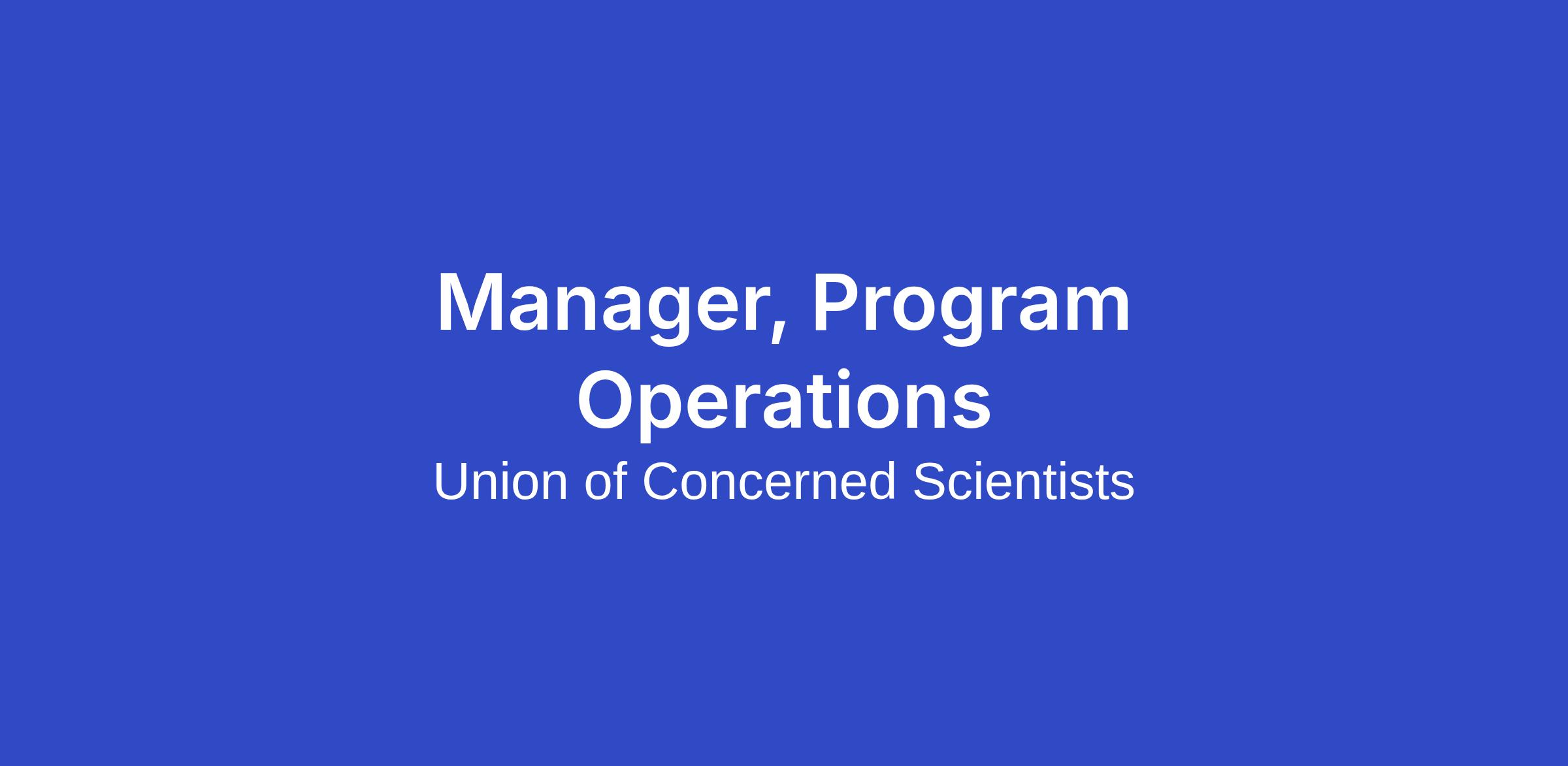 Manager, Program Operations