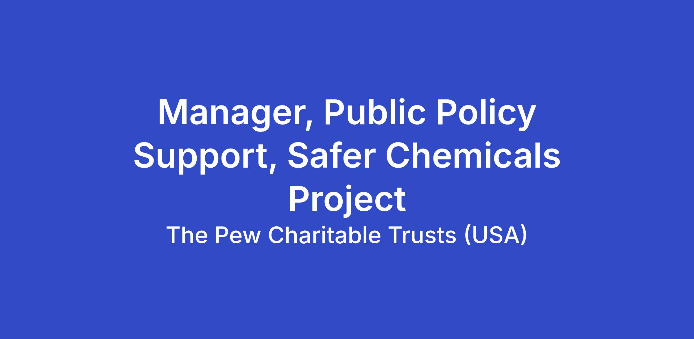 The Manager, Public Policy, Safer Chemicals Project, will report to the Project Director, Public Policy, and will lead a team that provides coordination and support to the state and federal policy teams that support agenda planning, research support, meeting materials development, and campaign deliverables and milestones tracking. The Manager will work closely with other policy staff, as well as partner closely with the cross-cutting team within the project and relevant program department teams and operations units as relevant.