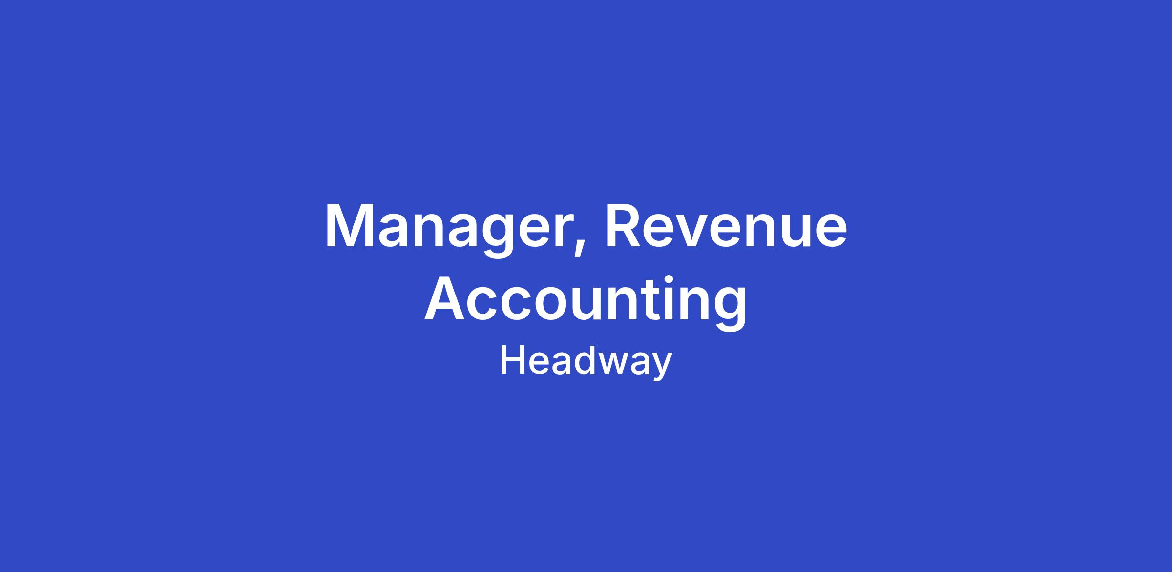 Headway is seeking a Manager, Revenue Accounting to help lead and scale the revenue accounting function. In this role, you will translate the revenue accounting strategy set by the Director of Revenue Accounting into a best-in-class operating model. You will own the day-to-day execution of revenue accounting, lead and develop a team of Senior Revenue Accountants, and drive continuous improvements across processes, systems, and controls.