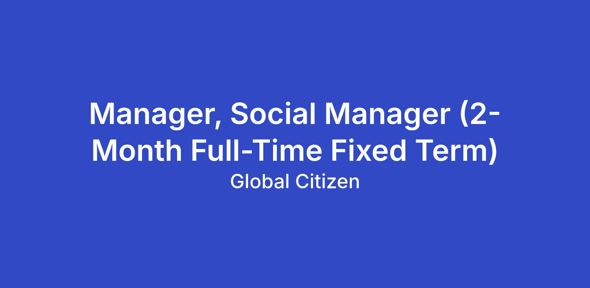 Global Citizen is seeking a Manager of Social Media to drive content creation and reporting for Global Citizen social media channels across multiple platforms. This role reports to the Senior Director/Head of Social on our Global Marketing Team. This person will have a mandate to help bring content to life on the platforms where our audience is: Instagram, TikTok, X, Facebook, and more.