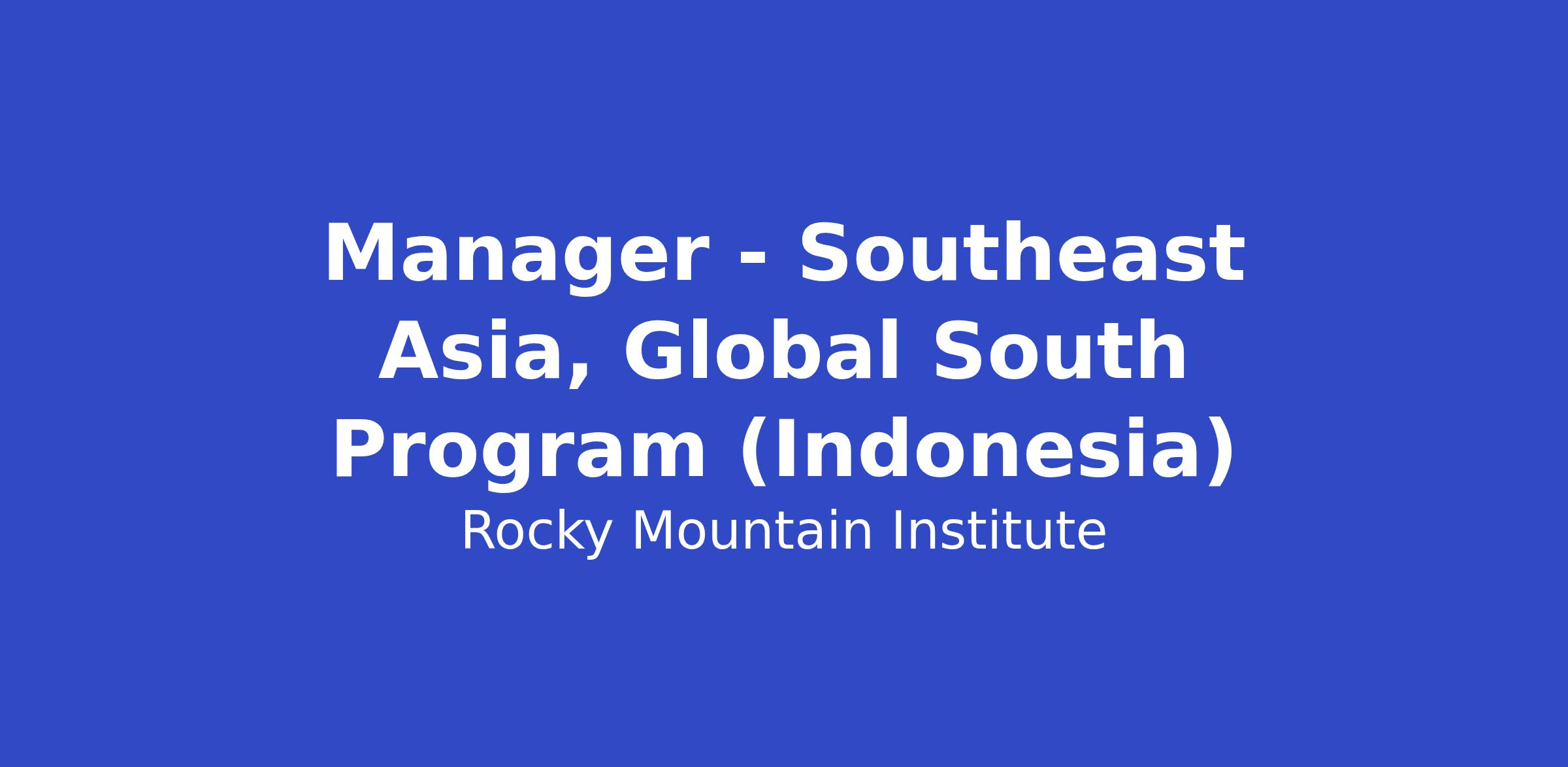 RMI is seeking an experienced manager with proven leadership track record to lead strategic engagements and impactful projects across Southeast Asia’s energy transition, with a strong focus on Indonesia. This role requires high-level problem-solving skills to deliver practical and actionable solutions to the interconnected complexities of political/institutional, financial, demographic, and technological changes in key markets in the region. Therefore, this role is intended for individuals who bring strong judgment, intellectual discipline, strong project management, and can advance projects/initiatives forward to achieve tangible results in a highly uncertain environment.
