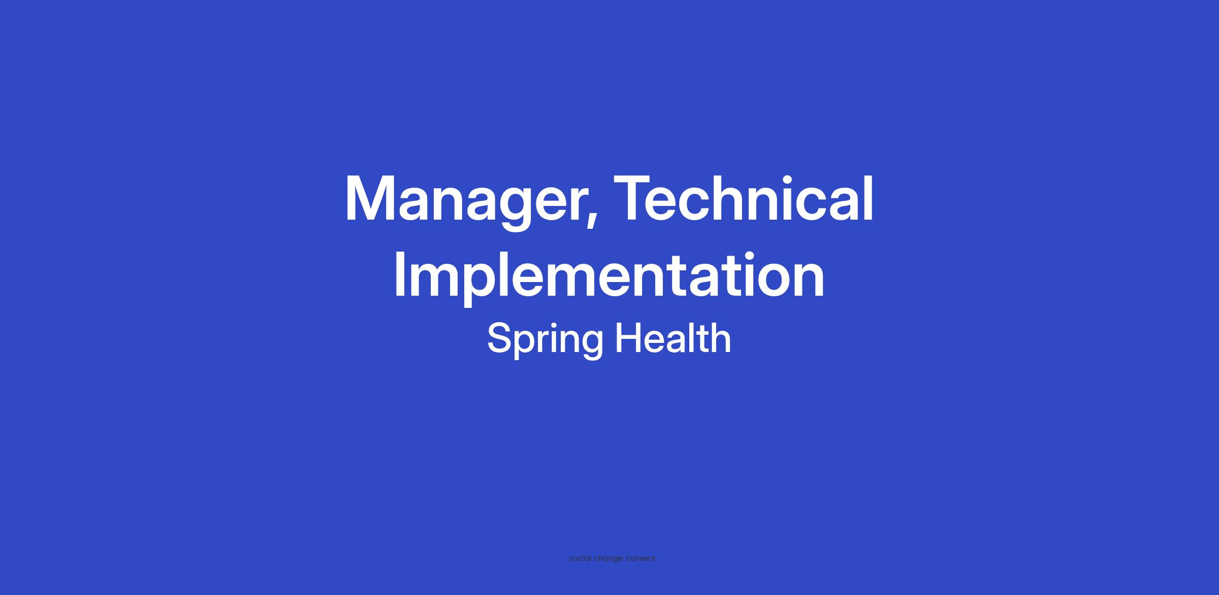 The Manager, Technical Implementation reporting to the Director, Implementation, will be responsible for the functional and strategic leadership of a team of Technical Implementation Managers. This role will cross lines of business supporting our direct, resold, and payer customers. Technical Implementation plays a key role in ensuring our new and existing customers have accurate and consistent data integrations. This role has continuous opportunities to work cross-functionally with other leaders and provide delightful customer solutions. The ideal candidate thrives in a fast-paced environment making key strategic decisions while also not being afraid to roll up their sleeves and dive into the details.