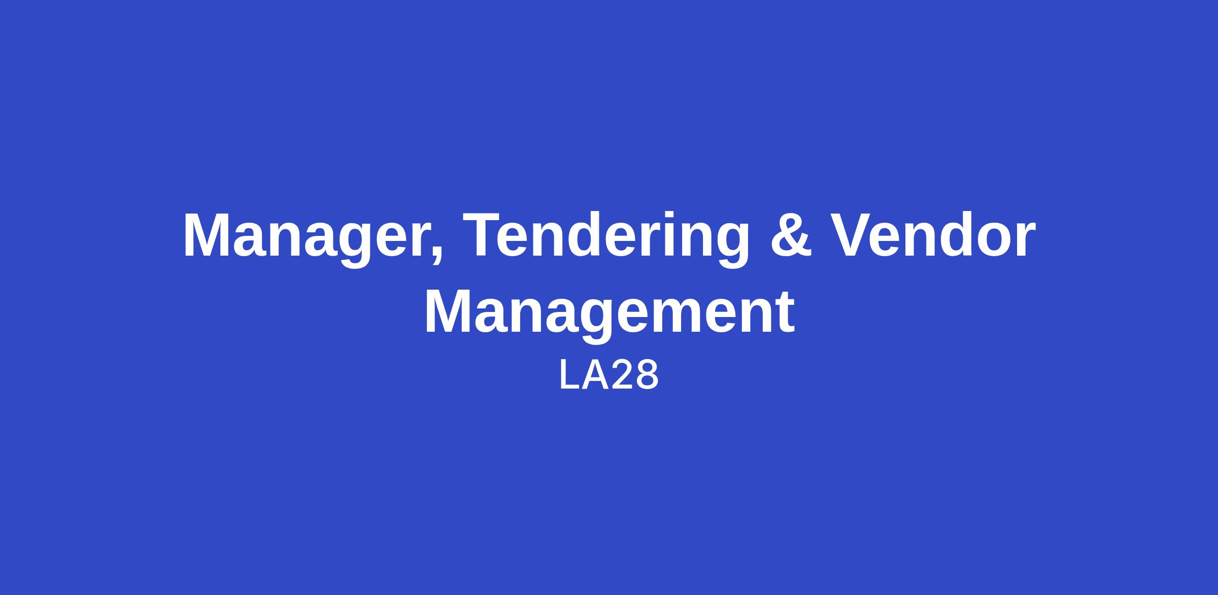 Manager, Tendering & Vendor Management - Cleaning & Waste: